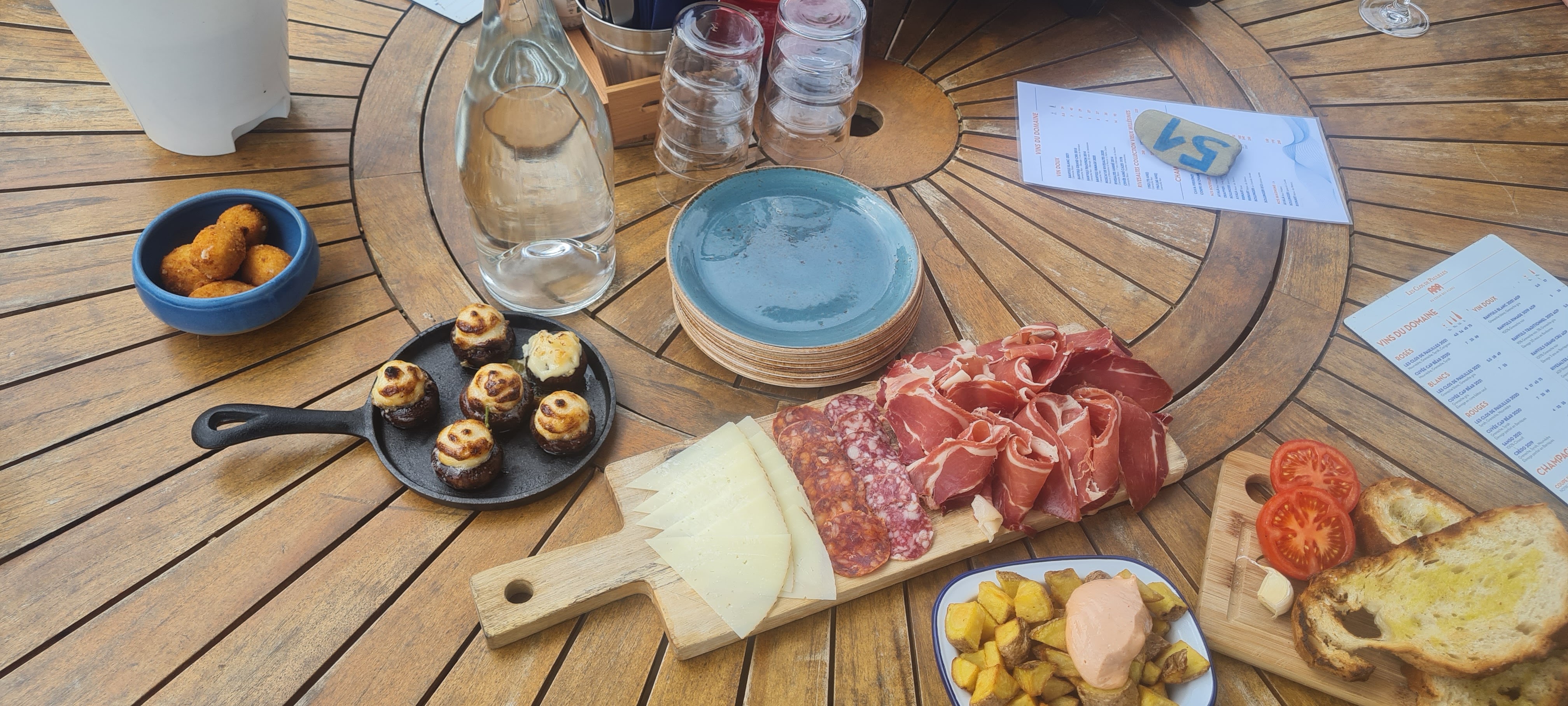 A cause de petites pluies, nous avons pris uniquement l'apéritif en extérieur dans cet environnement si splendide. On nous a ensuite placés a l'intérieur dans un cadre super sympathique. Très bon et.copieux repas de tapas et plats divers. Bref.un vrai plaisir ! Seconde visite en Juillet et de nouveau super qualité de service (Merci Benjamin pour l'entrain, l'efficacité et la gentillesse). Les cocktails étaient au top ainsi que les Tapas.. Merci