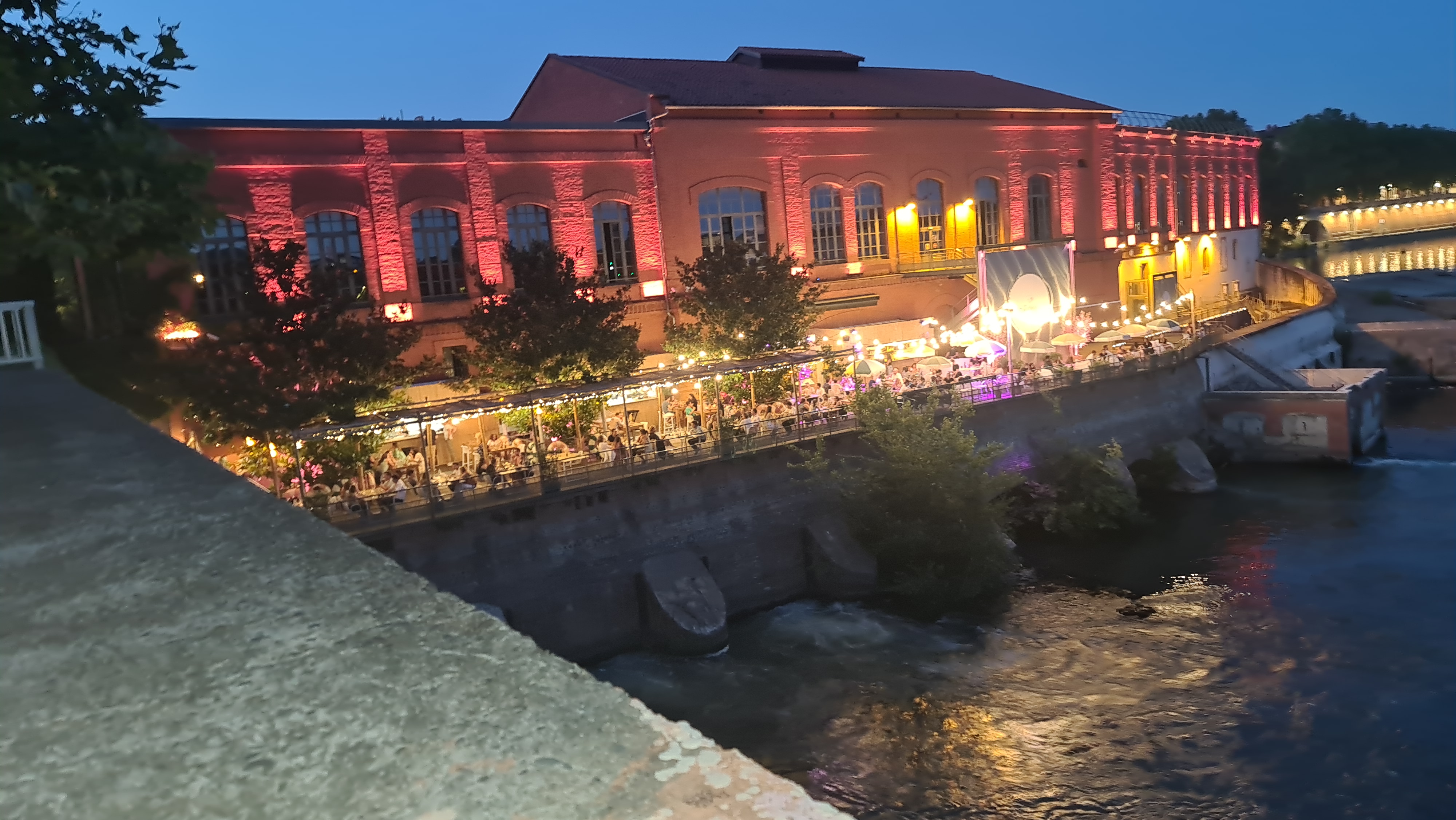 En bord de Garonne dans un lieu qui de prime abord ne provoque pas d'enthousiasme le bâtiment EDF bazacle, le restaurant turbine est en fait un lieu très agréable avec une superbe vue sur le dôme et la garrone. Et la cuisine, un régal,