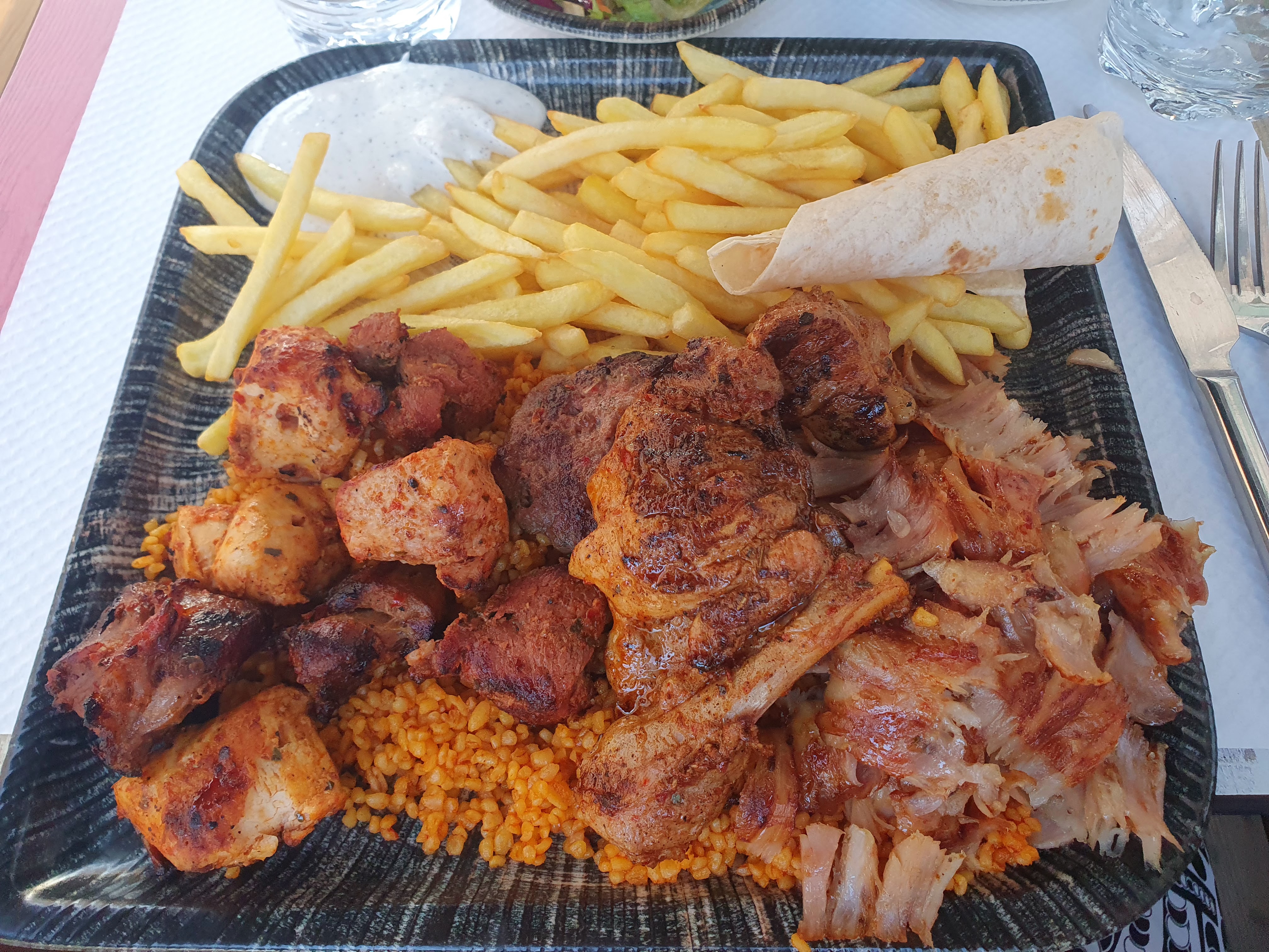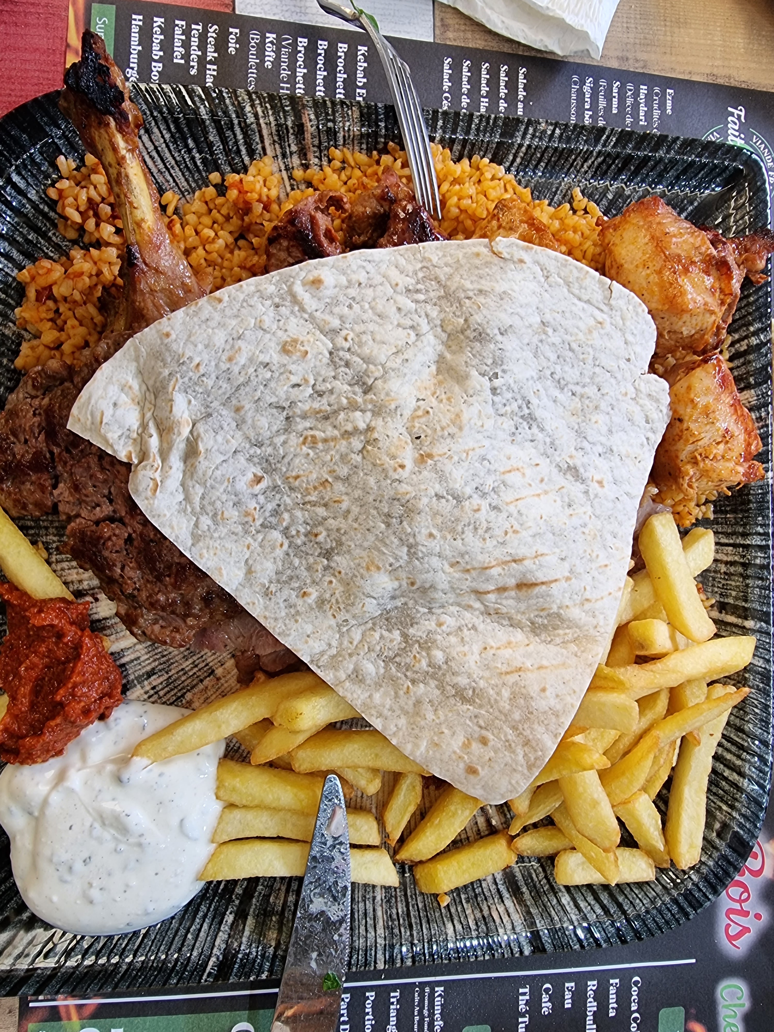 Une chose est sure : vous ne repartirez pas sur votre faim. Les plats sont simple, très copieux et très correct, la viande de kebab est excellente. L’établissement donne envie notamment avec la partie grillades au feu de bois visible des clients.