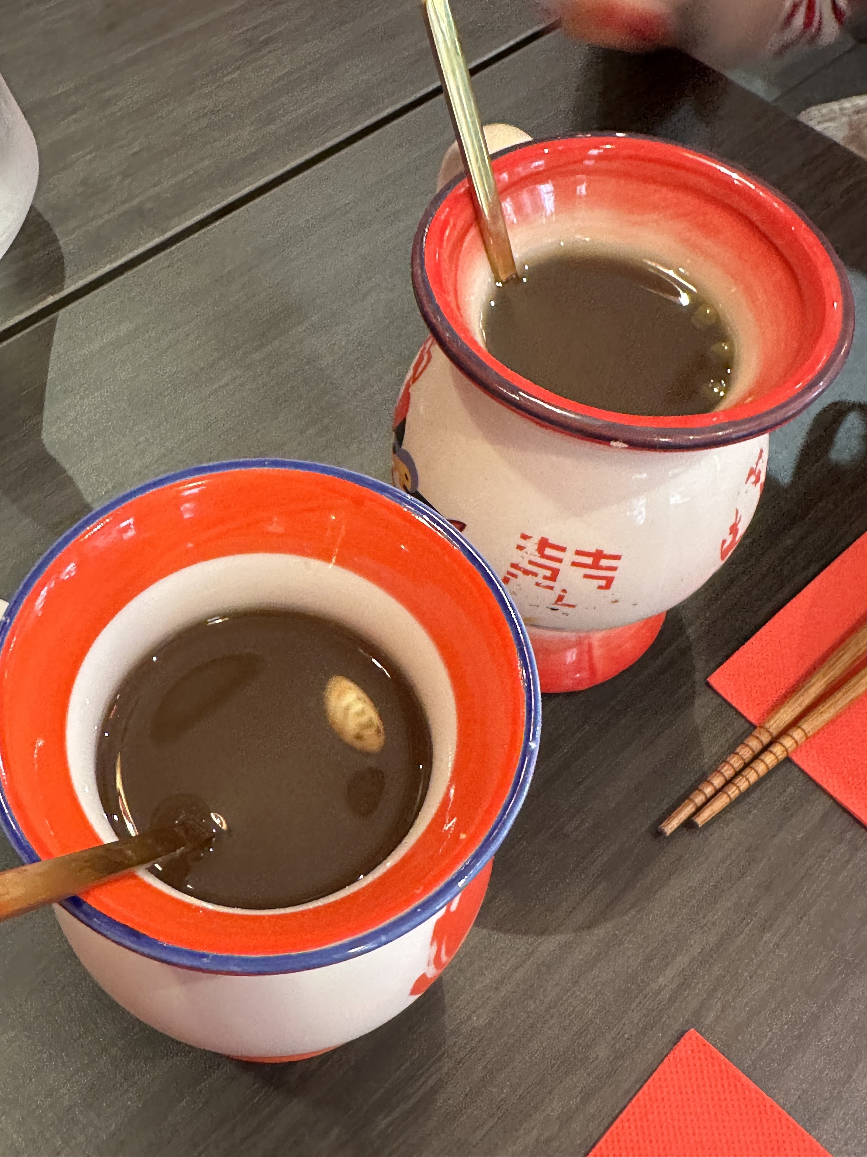 Il faut venir à l'avance si l'on veut boire la soupe limitée, puis optez pour les dernières pattes de cochon et graines de soja. La vaisselle et la décoration sont tout à fait uniques.