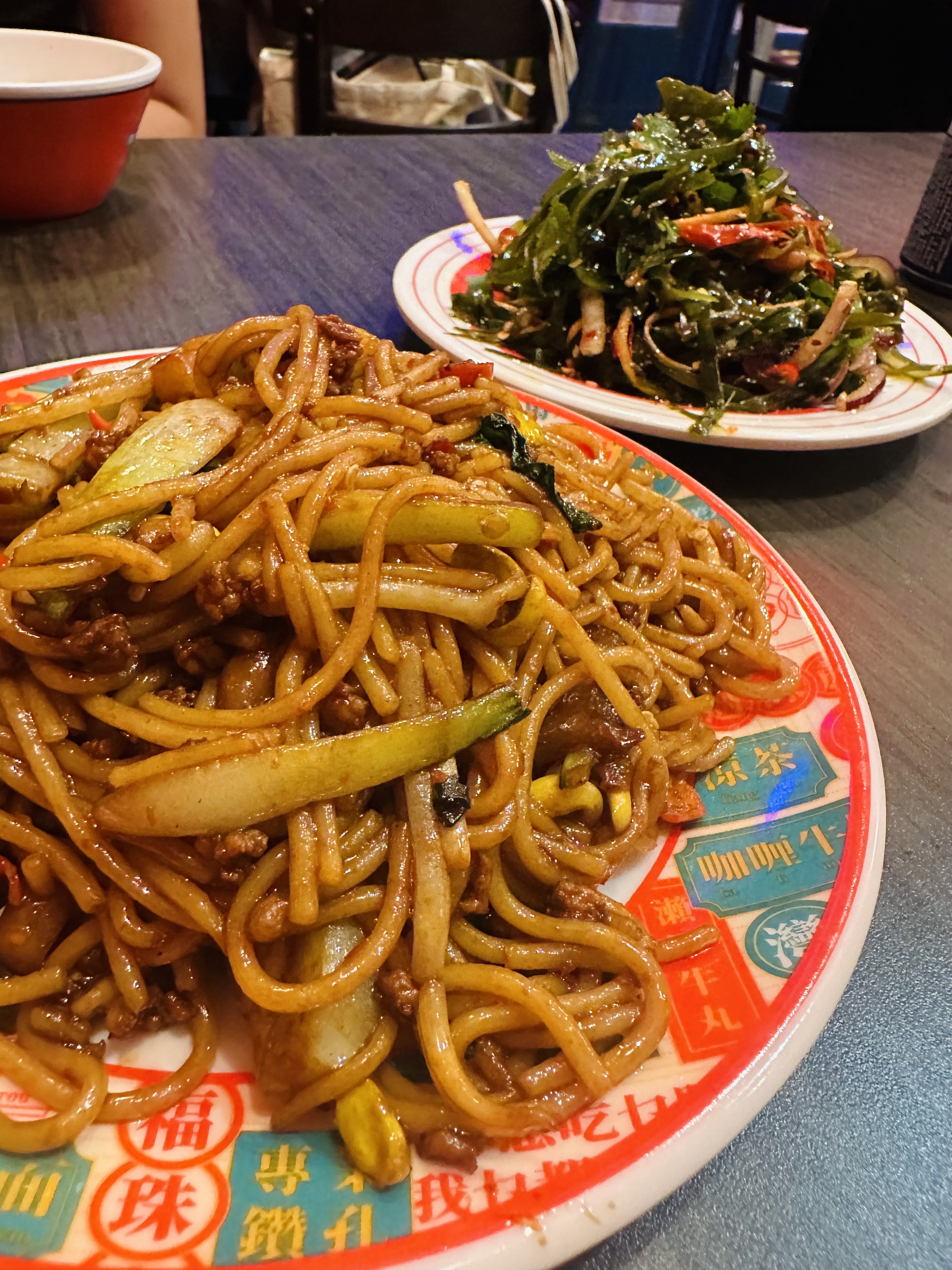 Les nouilles frites sont délicieuses et ont une forte saveur de pot ! Les kebabs sont également délicieux ! Il est plein à craquer même un soir de semaine et l'intérieur est très mignon.