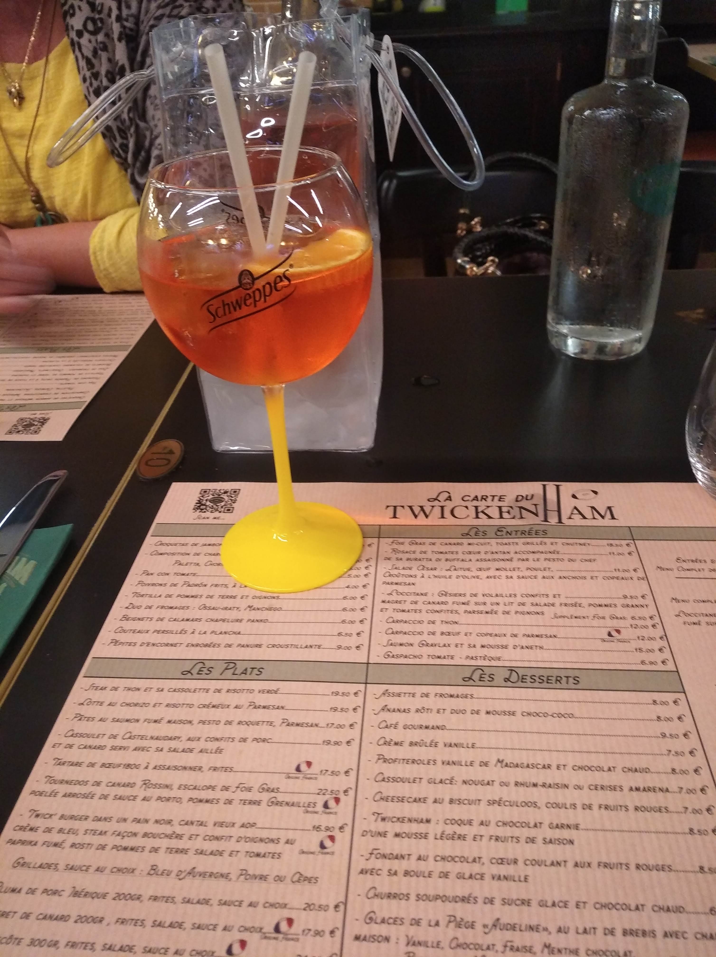 nous étions 4 à loger à l'Ibis Budget et comme nous venions du Gard nous souhaitions dîner pas trop loin de l'hôtel et la charmante hôtesse d'accueil nous à proposer le Twickenham à 400 mètres et comme ils sont partenaires c'est elle même qui a réservé pour nous et nous avons eu droit à un apéritif offert.... nous avons été super bien accueilli par toute l'équipe du Twickenham et en particulier par le barman Jo la moustache qui n'est pas leste sur les doses de Ricard .... bref nous avons passé apéritif + repas une très agréable soirée !!!! pour info Paulo n'a pas fini de digérer le succulent et copieux cassoulet .... en tout cas un grand MERCI à toute l'équipe du Twickenham !!!