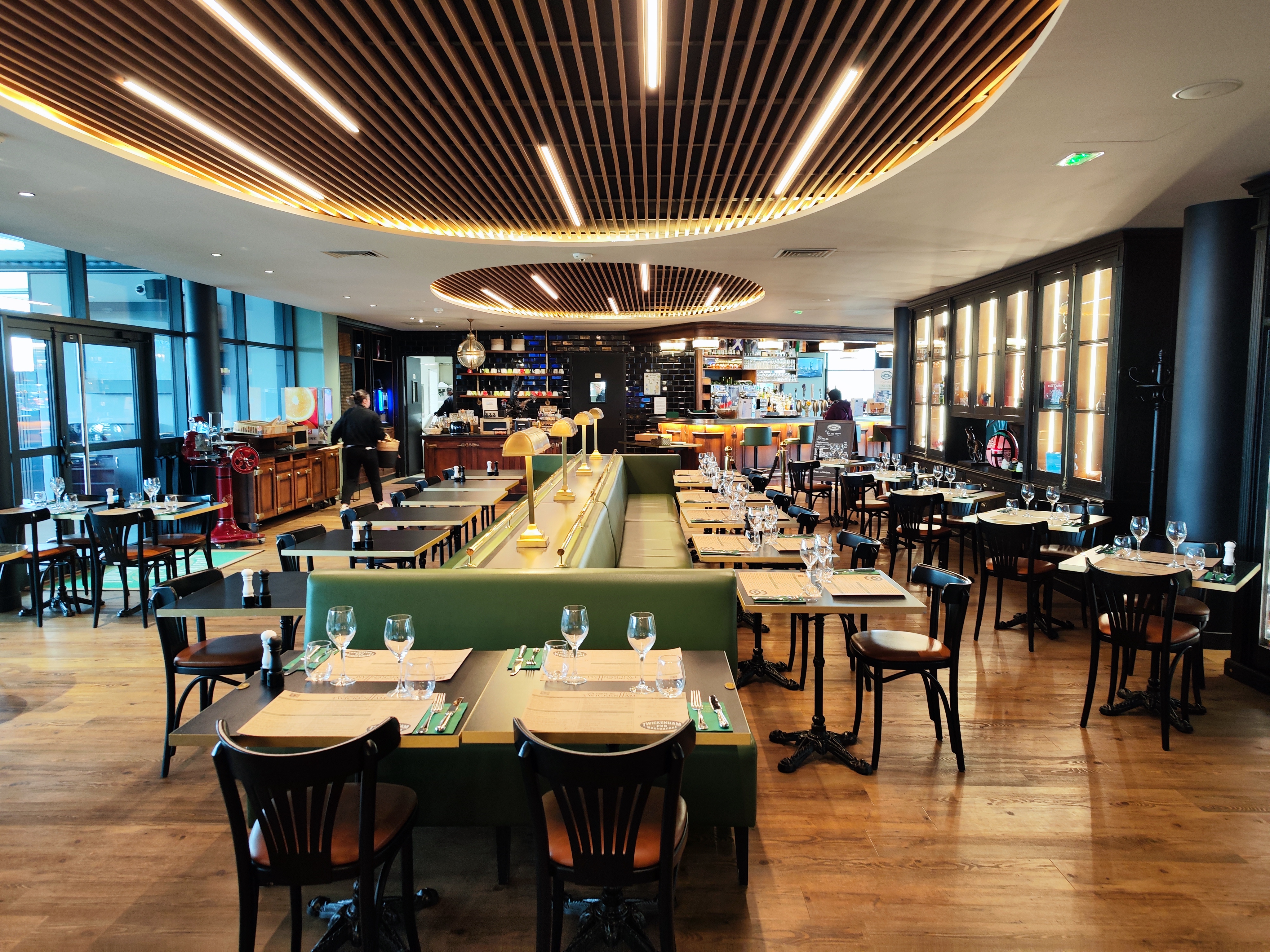 Plusieurs fois que l’on passe devant sans s’arrêter. Et bien nous regrettons de nous y être arrêter pour déjeuner. Manque de réactivité du côté du service, nous avons dû aller réclamer nos apéritifs au bar après plusieurs minutes à les attendre. Attente également pour la prise de commande.. Grosse déception de la qualité du foie gras du canard Rossini. Cependant cadre atypique, plaisant et original. Restaurant propre. Malheureusement nous ne reviendrons pas.
