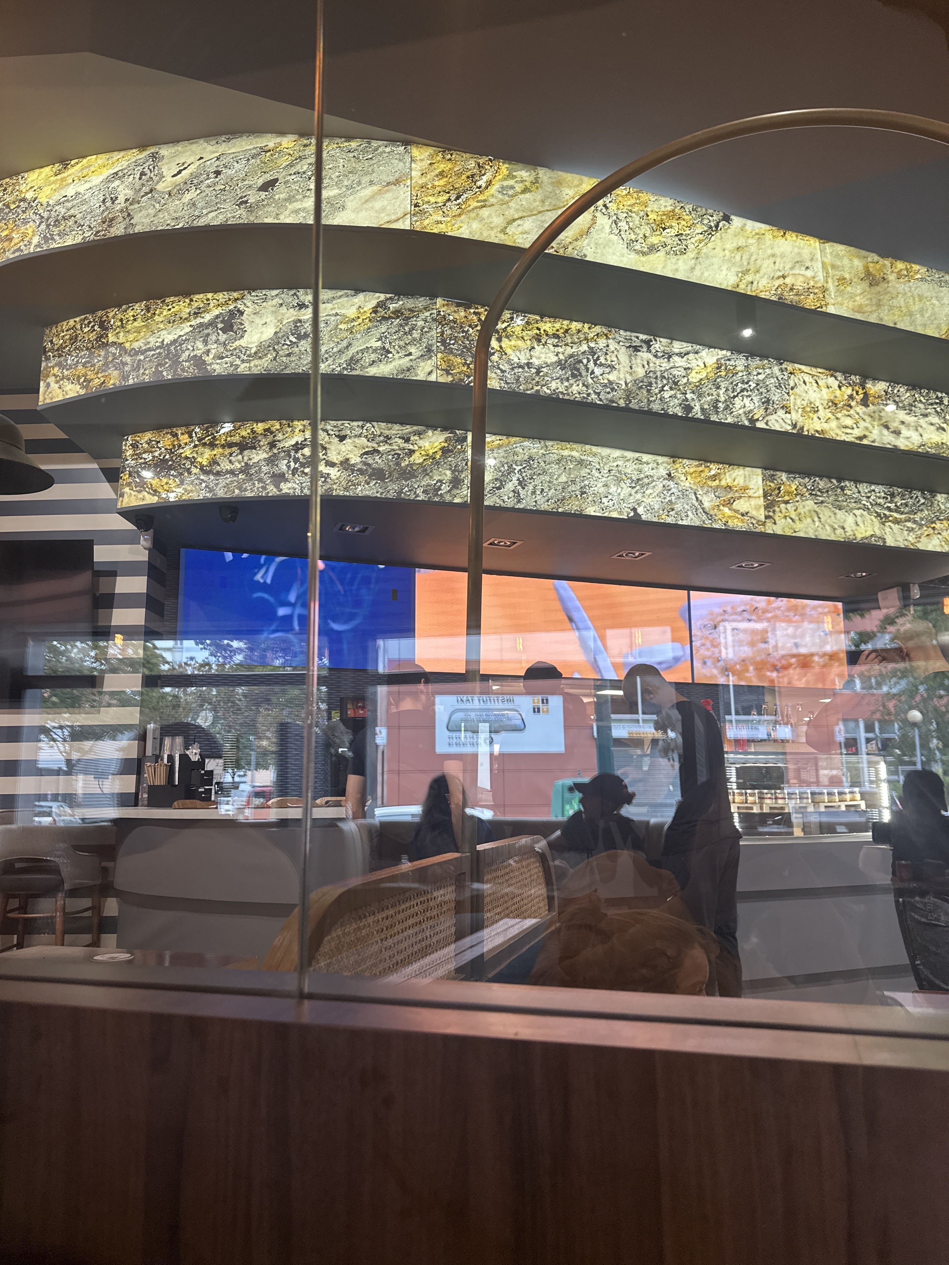 Service à revoir! La serveuse nous a même pas dit bonjour! Très belle salle, les assiettes sont bien présentées Au niveau du goût, un peu déçu par rapport à ce qui est vendu sur les différentes vidéos tiktok, des nouveaux influenceurs Les desserts sont bons, celui à la pistache un peu compact.