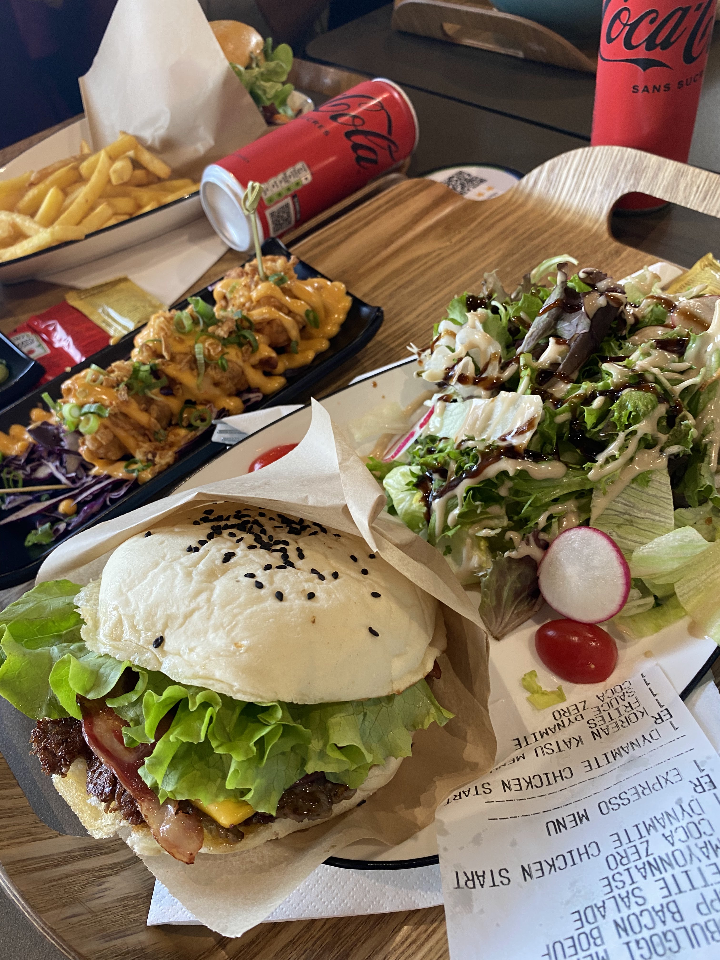 Resto convivial et chaleureux, parfait entre amis ou en famille, cuisine bonne nous avons pris avec Mme , crevettes et poulet dynamite en entrée , un duo smash burger et chicken burger maison avec frite maison pour moi et un bowl dragon rice pour elle , et menu enfant qui est de qualité avec des nugget maison très bonne au passage , tout était bon , bien élaboré et présenté, seule chose à revoir la sauce dynamite manque légèrement de goût , tiramisu mousse chocolat pas mal du tout, et boissons original .