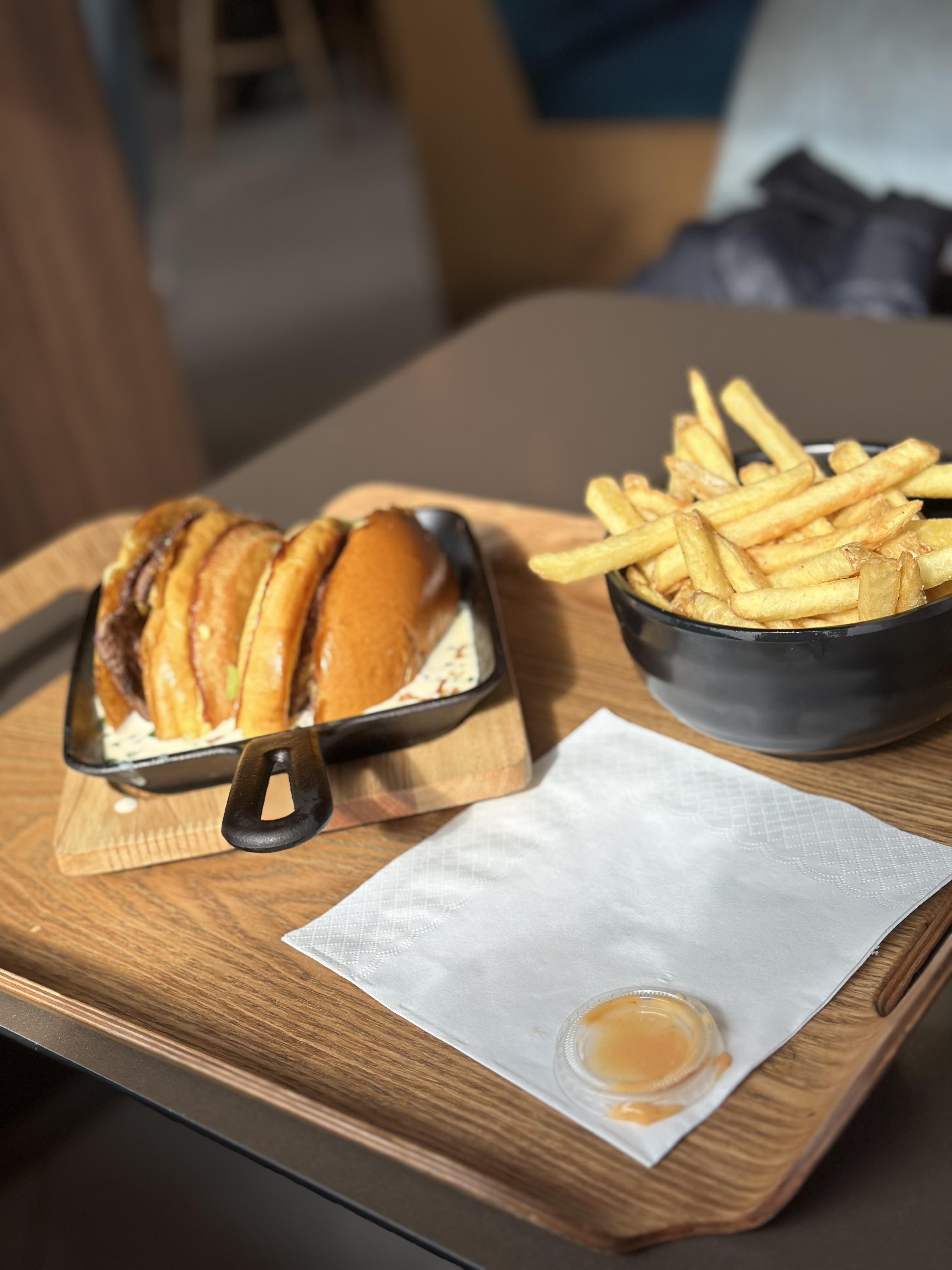 Spacieux, calme et adapté pour les familles. Les burgers sont bons et les frittes aussi ! Je recommande.
