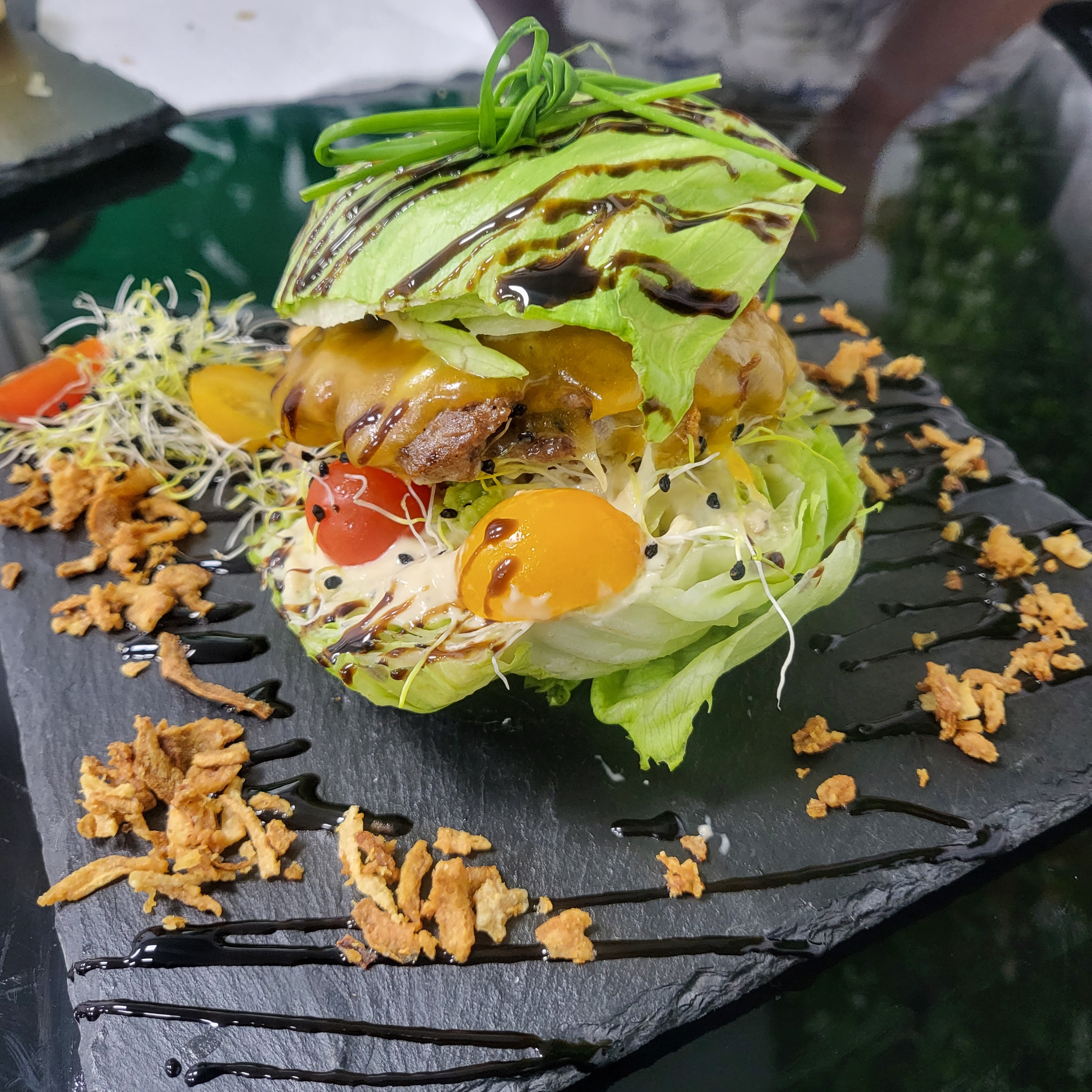 Très bonne première expérience que nous rentrerons pour sûr. J'ai testé (un peu par erreur d'inattention), le burger croquant à base de buns en salade iceberg. Et bien tant mieux, car il était magnifique et super digeste et pas moins gourmand (on culpabilise moins de manger un burger). Frites de patates douces très bonnes également (si il fallait trouver un défaut c'est qu'elles manquaient un peu de chaleur, bien que nous habitions pas loin), les petites sauces qui vont avec sont un + pour prolonger le voyage gustatif. En résumé : du goût, du goût et du goût ! Top !