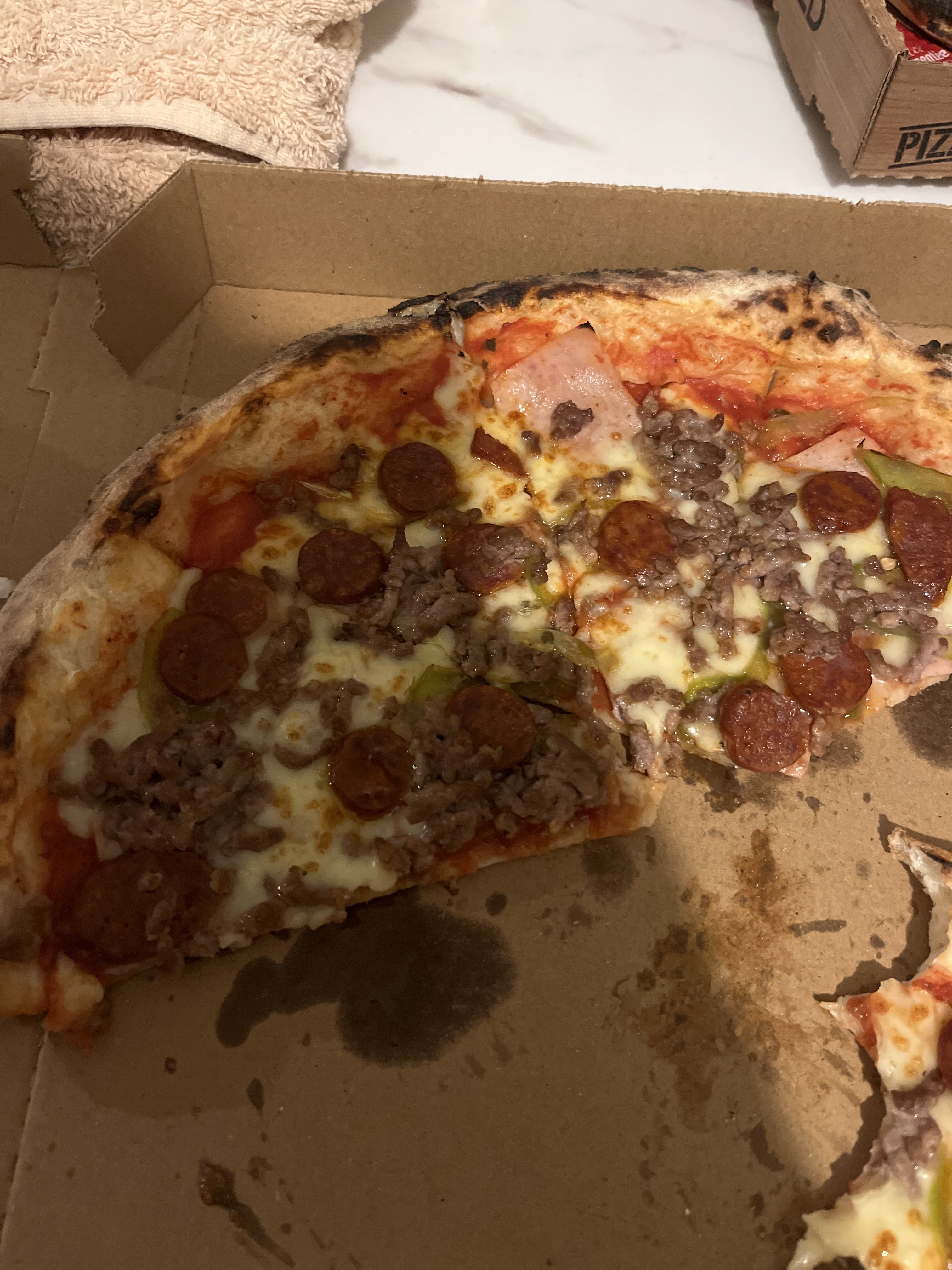 Pizza très bonne . (Toute viande certifiée Halal).
