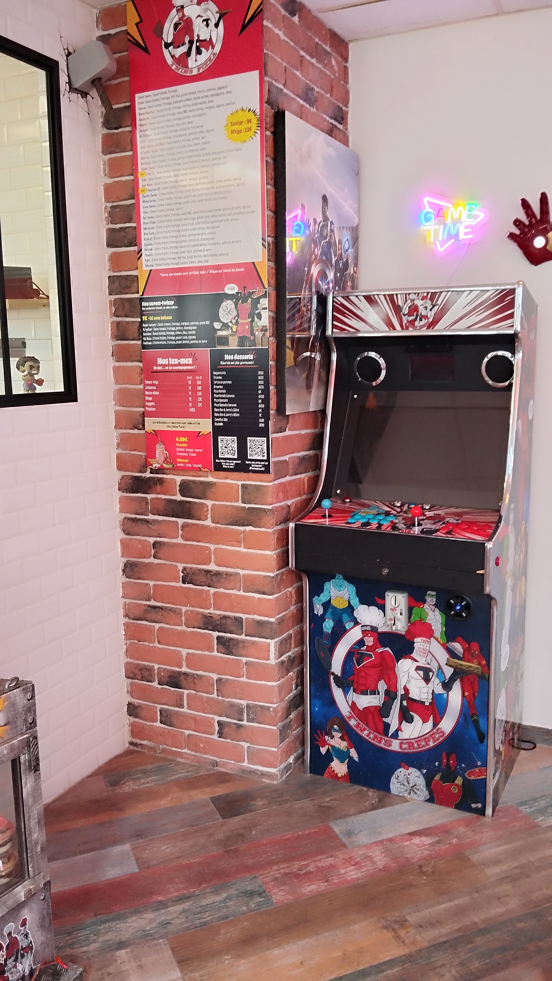 Cadre de la pizzeria juste excellent pour les fans de super héros !!!! Pizza énooooormmmmeeeee pour les plus grandes et vraiment très bonnes !!! Une vraie bonne adresse pour qui souhaite manger des pizzas qui sortent de l'ordinaire et à un prix très abordable :)