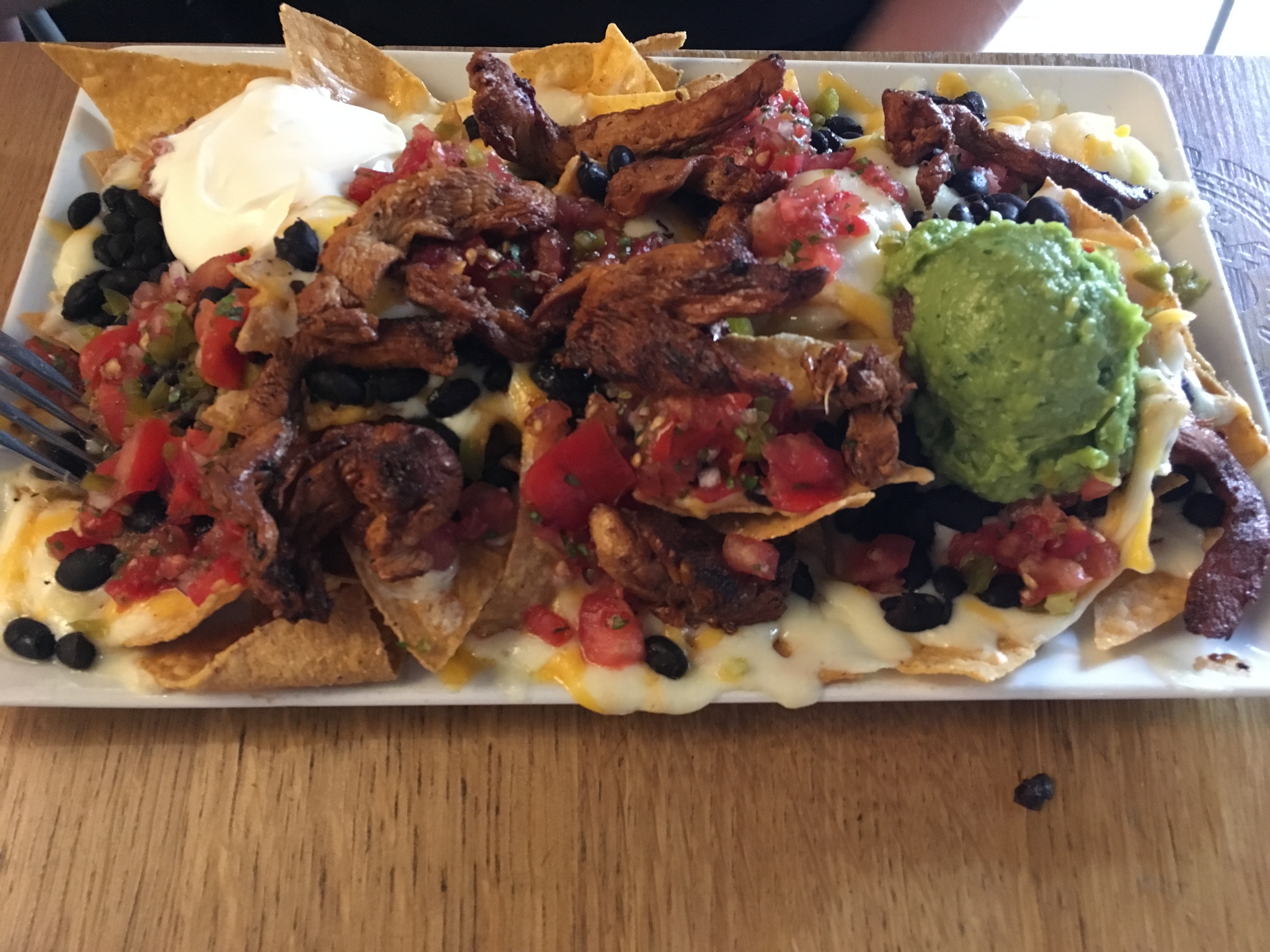 J'ai essayé les nachos. Probablement le plus étonnant de tous les temps. Des portions énormes. Joli style de donner la quesadilla, avec du riz et du pico.