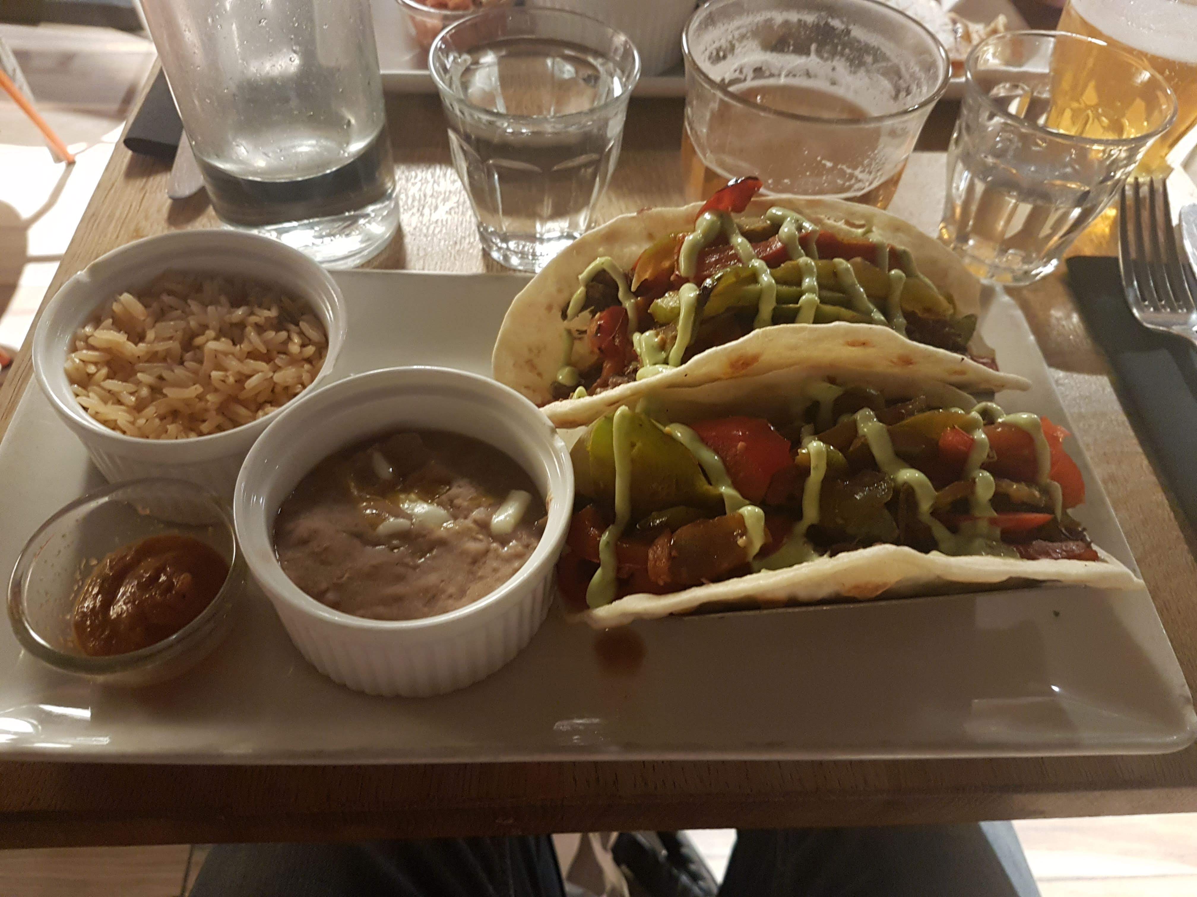 Plutôt moyen. On y avait mangé il y a 3 ans et c'était excellent. Malheureusement cette fois-ci, l'ensemble était moyen. Les tacos d'agneau n'avaient que très peu de viande, ils étaient bourré de salade et pas particulièrement goutus. Les nachos étaient plutôt bons car servis chauds. Il y avait suffisamment de guacamole mais extrêmement peu de salsa (le truc qui coûte rien), du coup pas assez de sauces pour tout les nachos. Le cookie mi cuit était bon. Vraiment dommage pour les tacos. J'en ai mangé des bien meilleurs ailleurs.