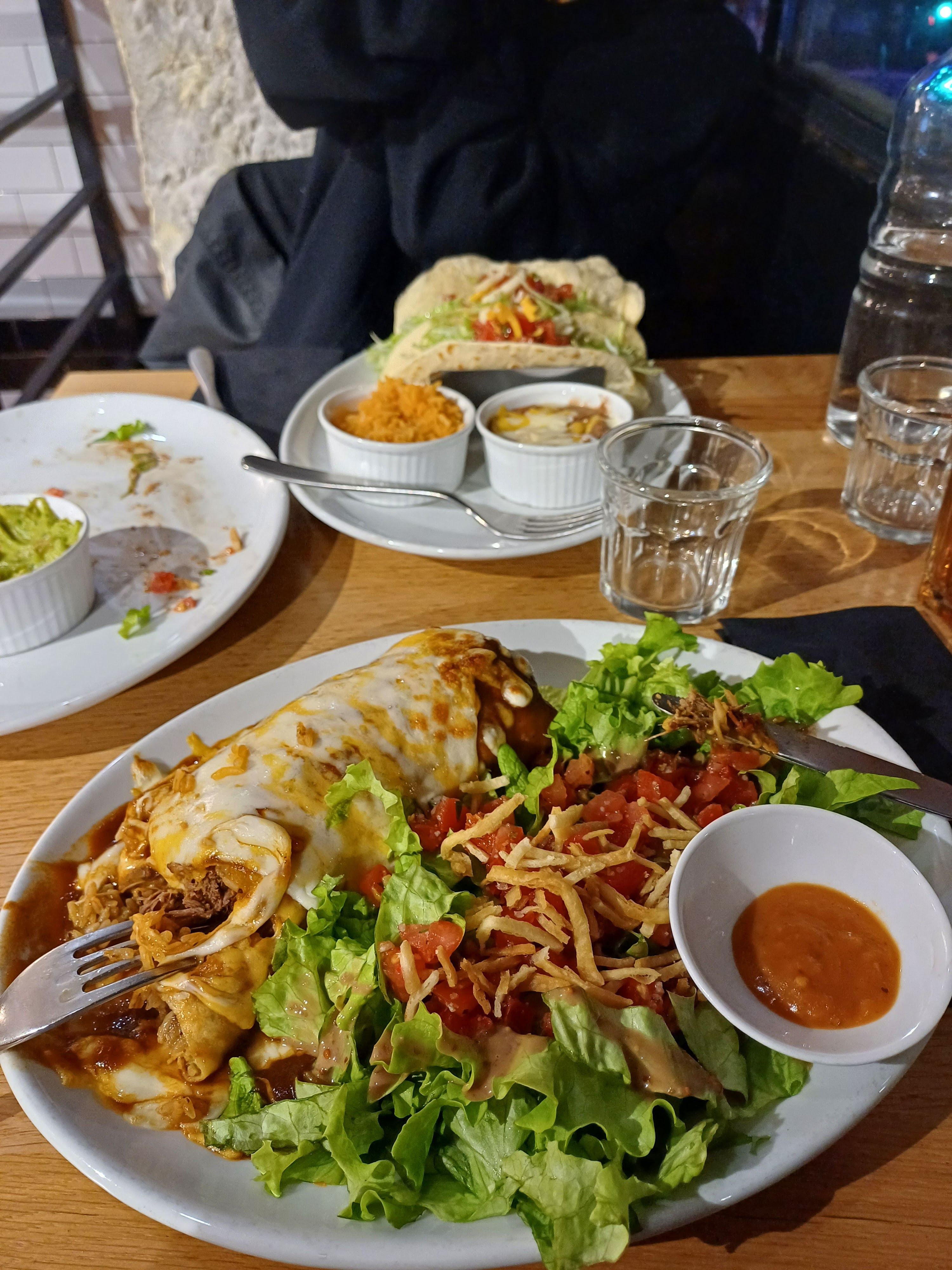 Une quantité incroyable de glucides (frites, tortillas etc) et trois feuilles de salade dans un menu à deux personnes. McDonald's fait mieux.
