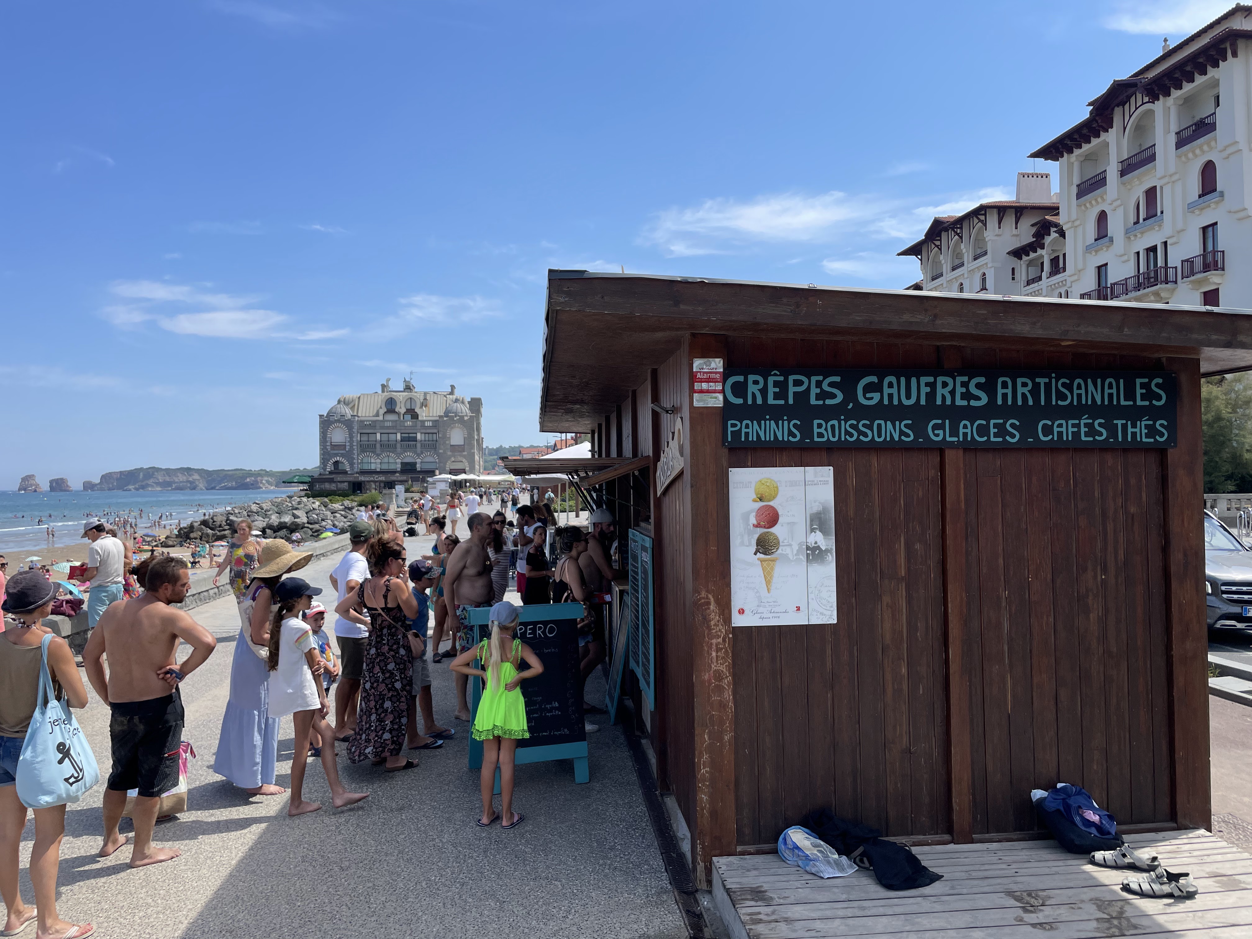 Très bonne surprise juste au bord de la plage! Les salades et sandwichs sont frais et savoureux. Les crêpes sont excellentes ! La crêpe chocolat noir piment d'espelette est à tomber. La longue file d'attente en août est d'ailleurs un signe.. Alors quand c'est bon, on n'est pas gêné d'attendre un peu, surtour quand on voit que le personnel s'active sans cesse et est plutôt bien organisé. Nous n'avons pas testé, mais sont également proposés petit-déjeuners, goûters, et apéritifs !