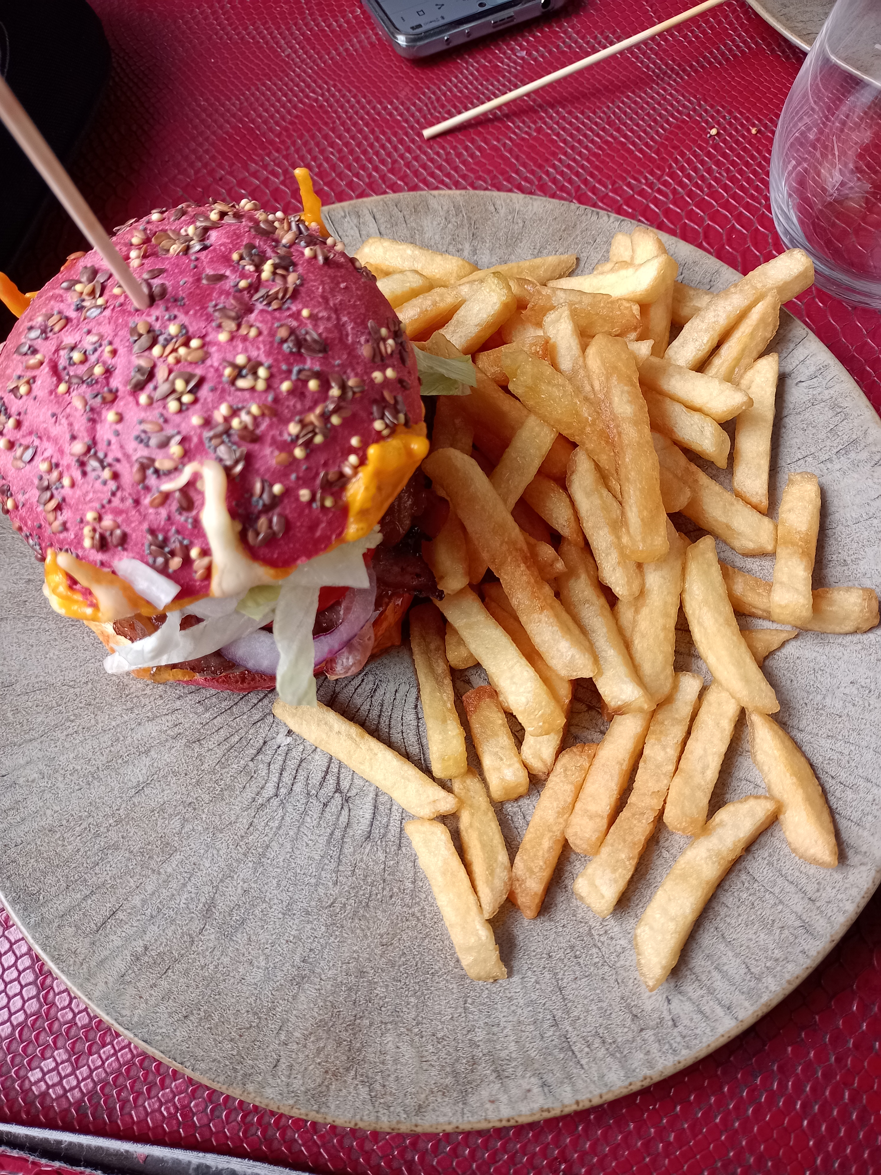 Un grand bravo à ce Monsieur (seul aux commandes aujourd'hui) très courageux qui nous a préparé et servi de très bon Burger avec leurs pains à la betterave ! Une 1ere pour nous, un vrai délice. Bon courage pour la suite de la saison ;)