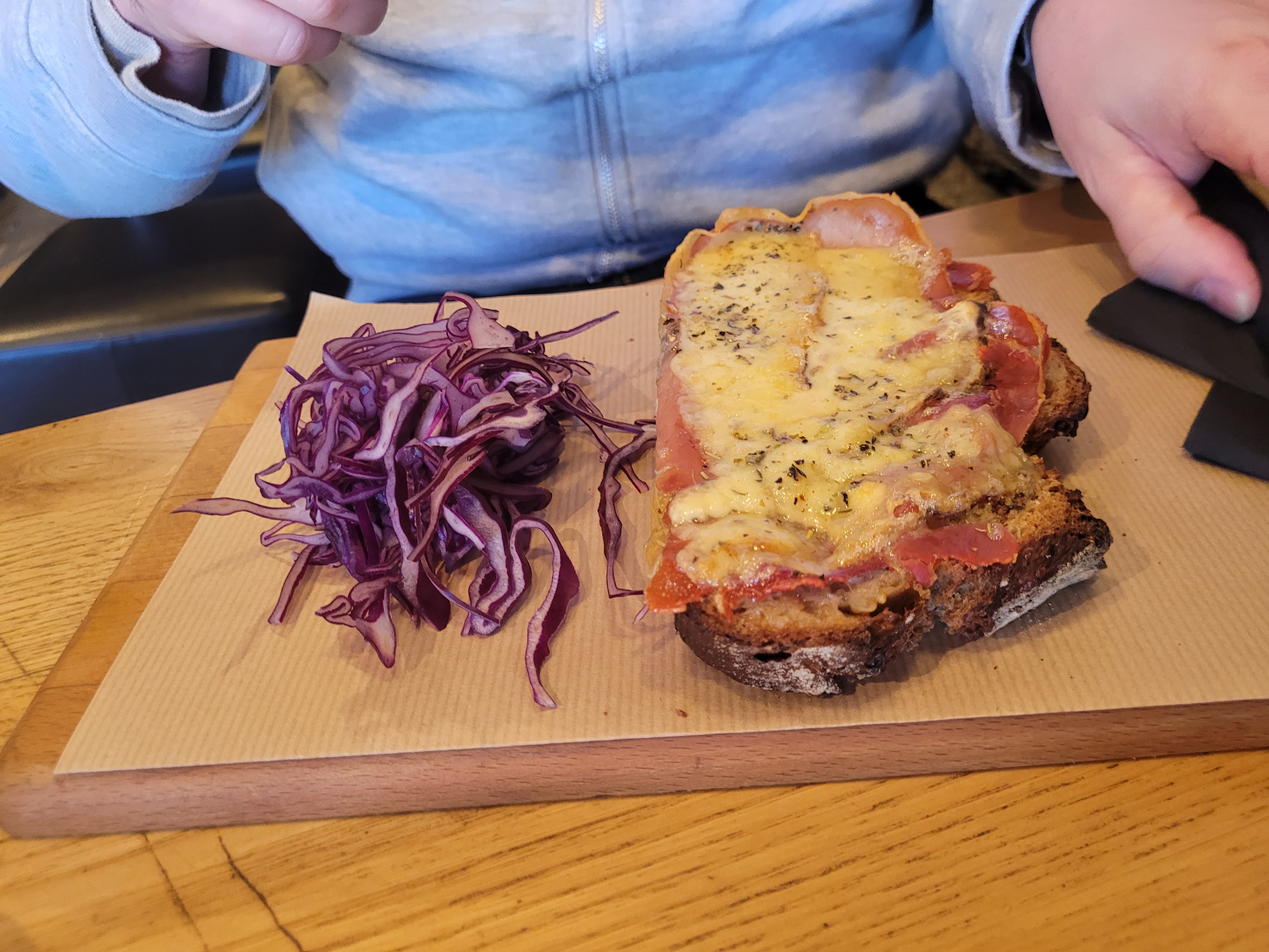 Excellente adresse aurais-je pu écrire si notre expérience n'avait pas été ruiné par un serveur infâme, un petit teigneux aux cheveux longs. Je n'avais encore jamais vécu ça, c'est mémorable ! On parle de quelqu'un qui à la 1ère interaction souffle, se montre rude et désagréable, ose s'exclamer vous n'aurez pas de garnitures et ne dit pas merci/bonjour. 30 minutes après la commande, on se rend compte, pas grâce à lui, qu'il fallait récupérer les commandes au comptoir. Quand on le confronte, il a le culot de nous dire qu'il était évident qu'il fallait venir chercher nos plats, alors que nous étions littéralement à 2 mètres du comptoir et qu'on aurait pu nous le dire simplement. Nous avons pu recommander avec son collègue, qui bizarrement a mis la garniture avec les tartines (?!) et qui s'est montré normal, professionnel. Bref, tartines excellentes, soupe très bonne, et les autres serveurs sont professionnels, courtois et aimables. Courage à eux !