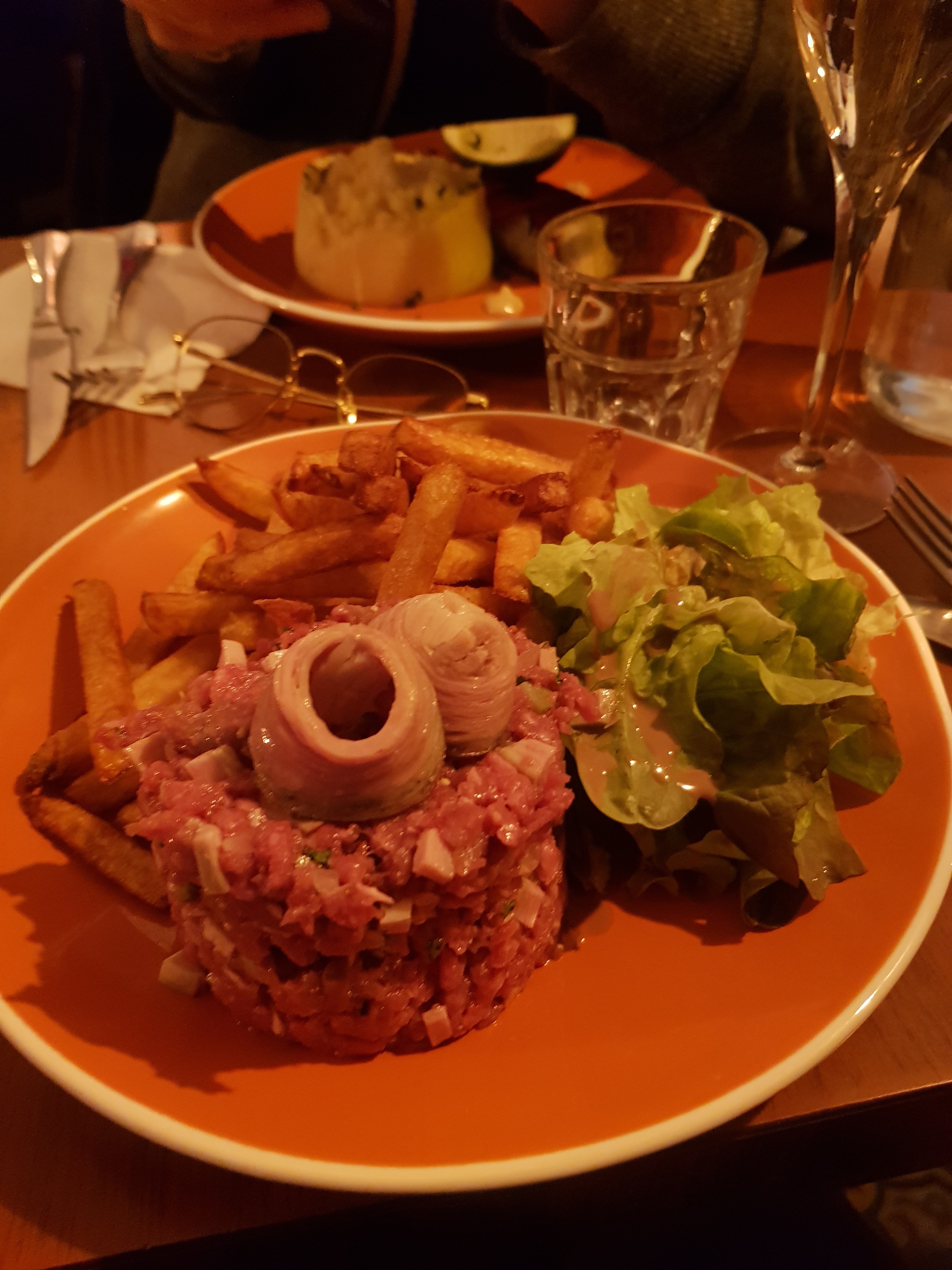 Les plats sont beaux et bons, fabriqués sur place avec des produits frais, venus de Bretagne, des classiques revisités, du tartare de boeuf agrémenté d'andouille à l'indétrônable galette saucisse Belle surprise, nous y retournerons