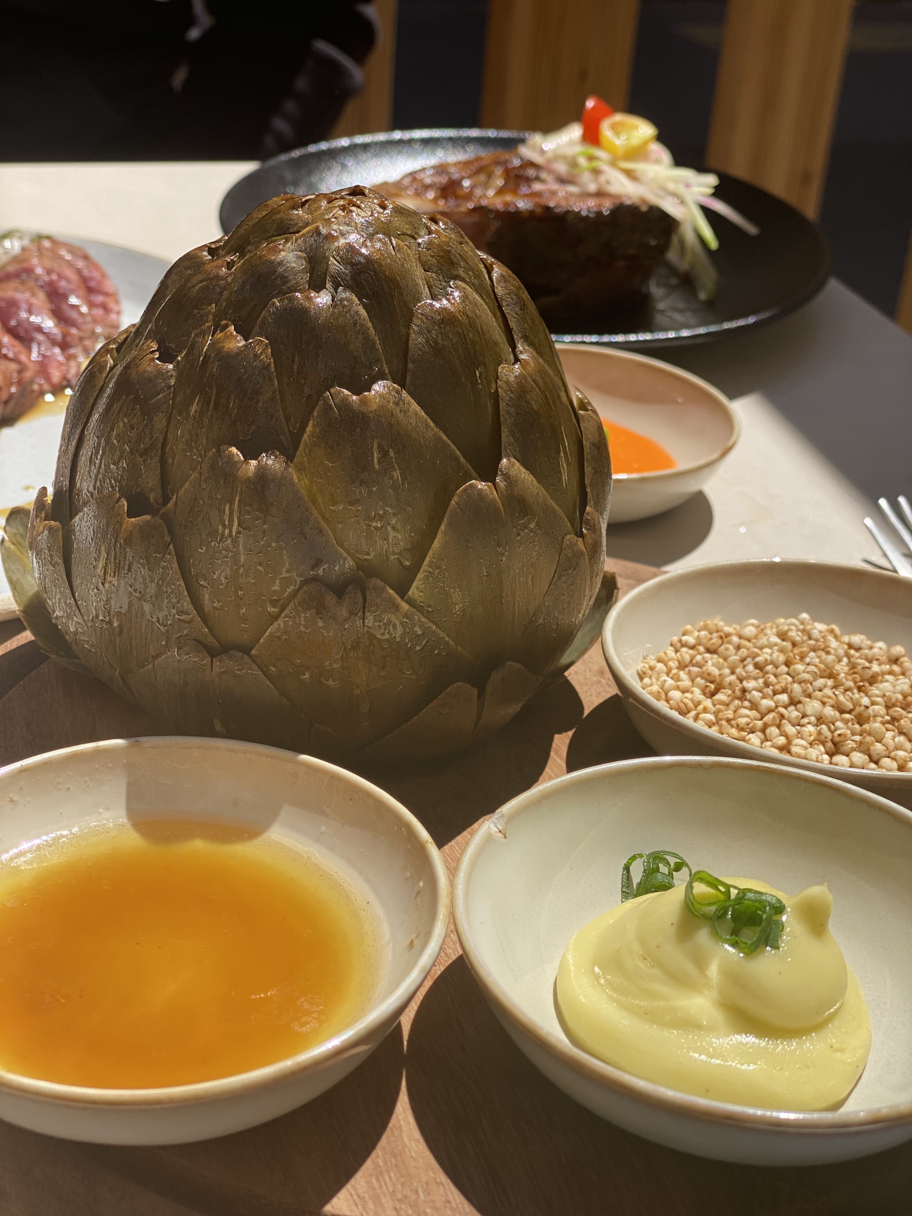 J'avais commencé avec le fameux poireau : énorme. Puis les bao et gyoza : immense. Terminé en apothéose avec la mangue. Excellent moment.