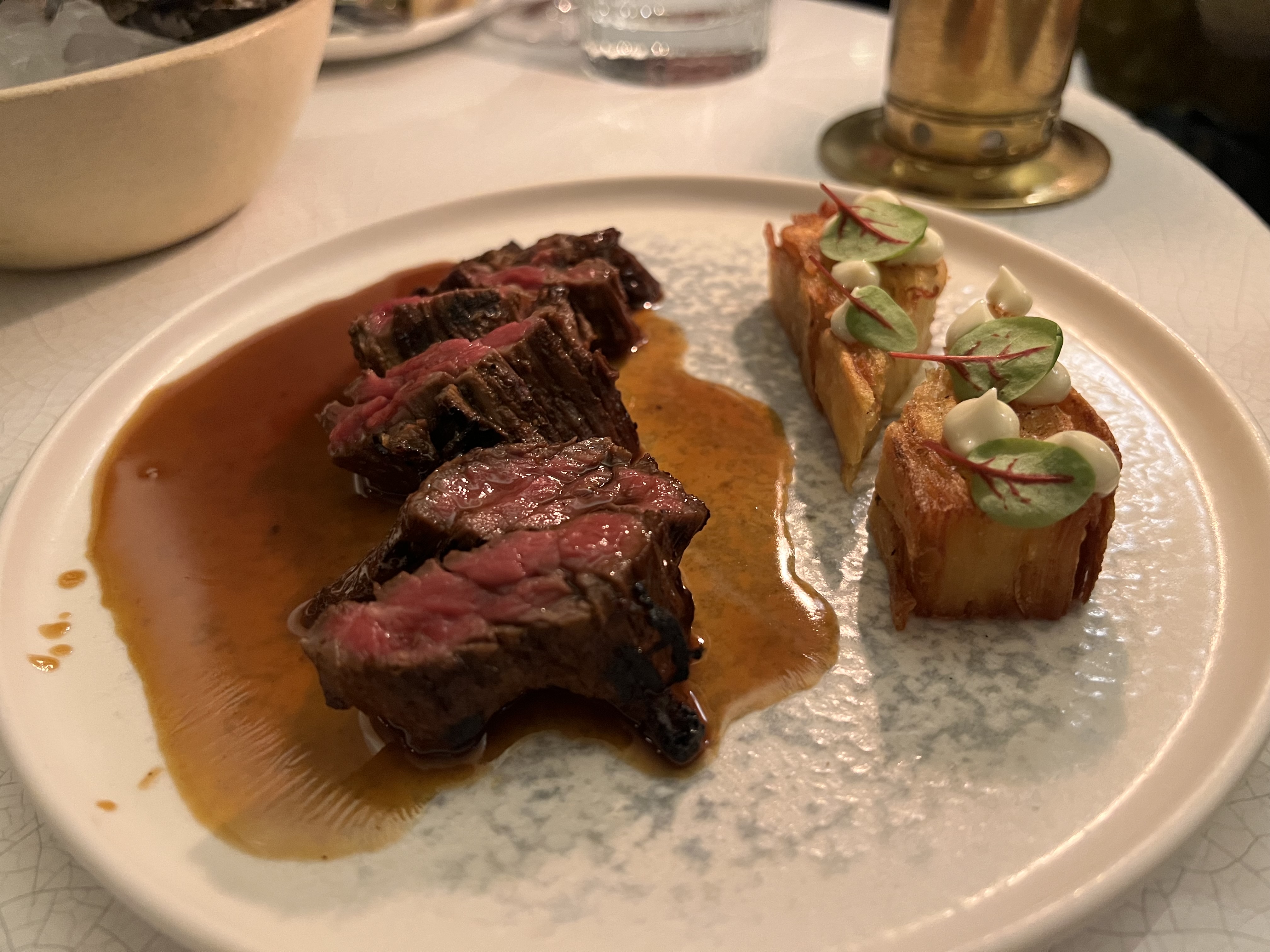Excellente nourriture et cocktails. Les plats sont vraiment incroyables, tous ceux que nous avons essayés étaient excellents, notamment les huîtres, le veau, les gyozas et... le pain et le beurre ! Félicitations à l'équipe et au chef