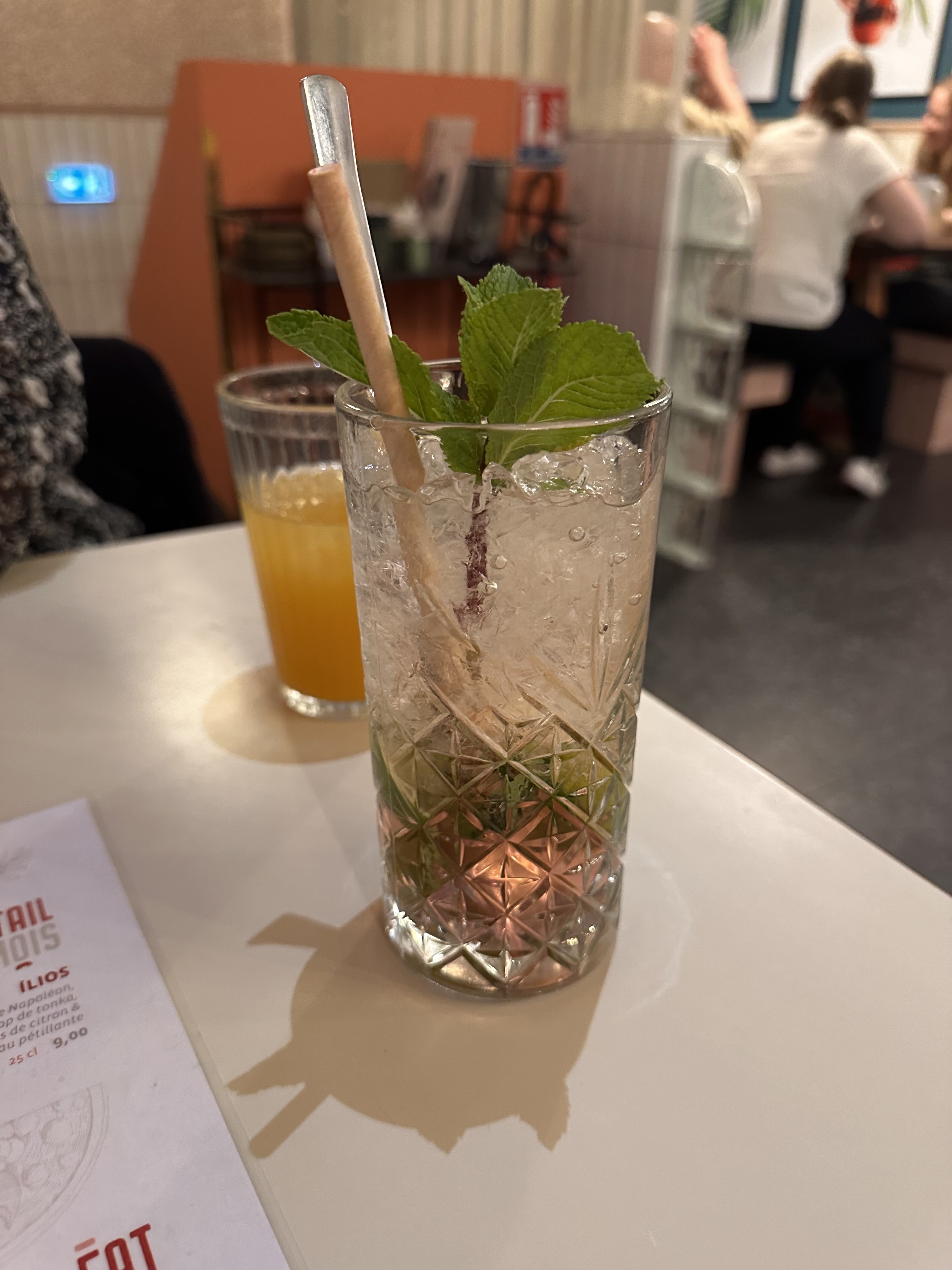 Jus d’orange dit pressé sortie de bouteille… sans nulle doute… tres déçu pour 6€ le verre!! Le diabolo est juste avec de l’eau pétillante sans limonade… Et je ne parle pas de leur dessert…
