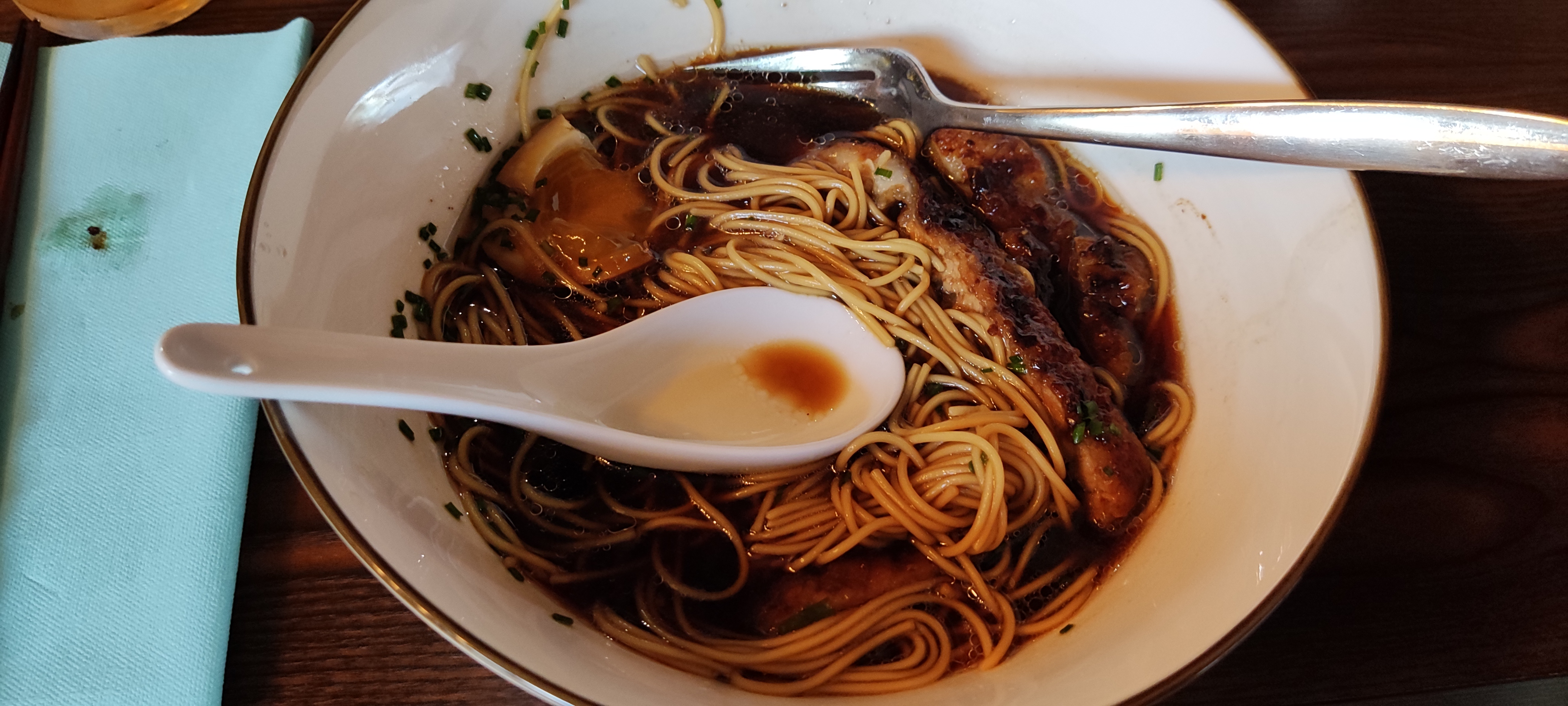 Une expérience merveilleuse et des plats parfaitement élaborés comme les nouilles de Macao et la Panna cotta au thé vert. Et une merveilleuse représentation des goûts traditionnels dans les nouilles au bœuf épicées.