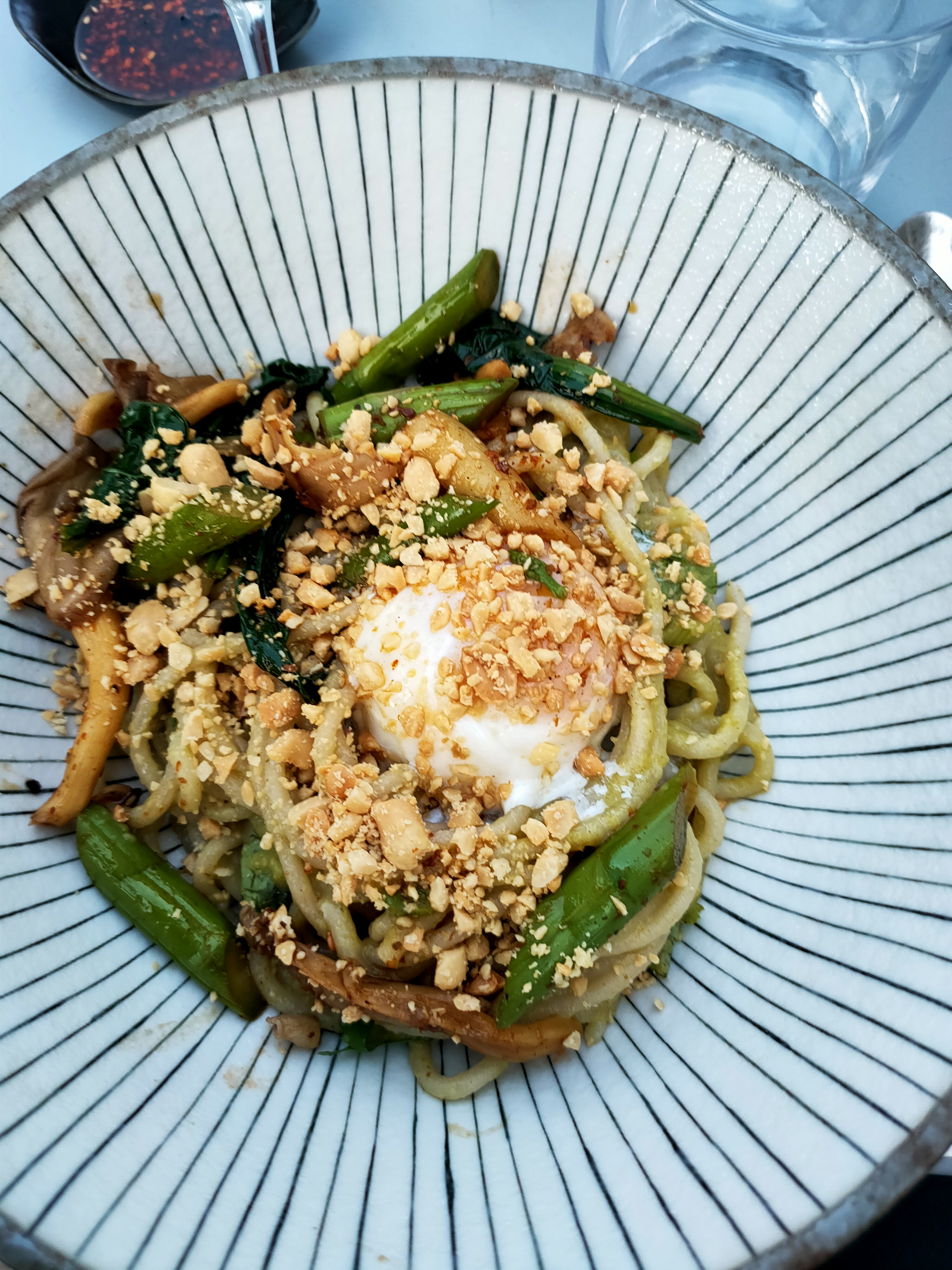 Plats savoureux et originaux. Nouilles fraîches. Une variante végétarienne était fournie sur demande. Entrée et plat +/- 22 euros et nous avons mangé largement assez. Très bon rapport qualité/prix. La palette gustative aurait peut-être besoin d'être peaufinée, mais vu le prix, le chef met sur la table des plats délicieux. Le tapioca à la mangue est fortement recommandé. Fonctionnement correct (un peu lointain). Aménagement très cosy avec lumière chaleureuse et belle terrasse. Recommandé!