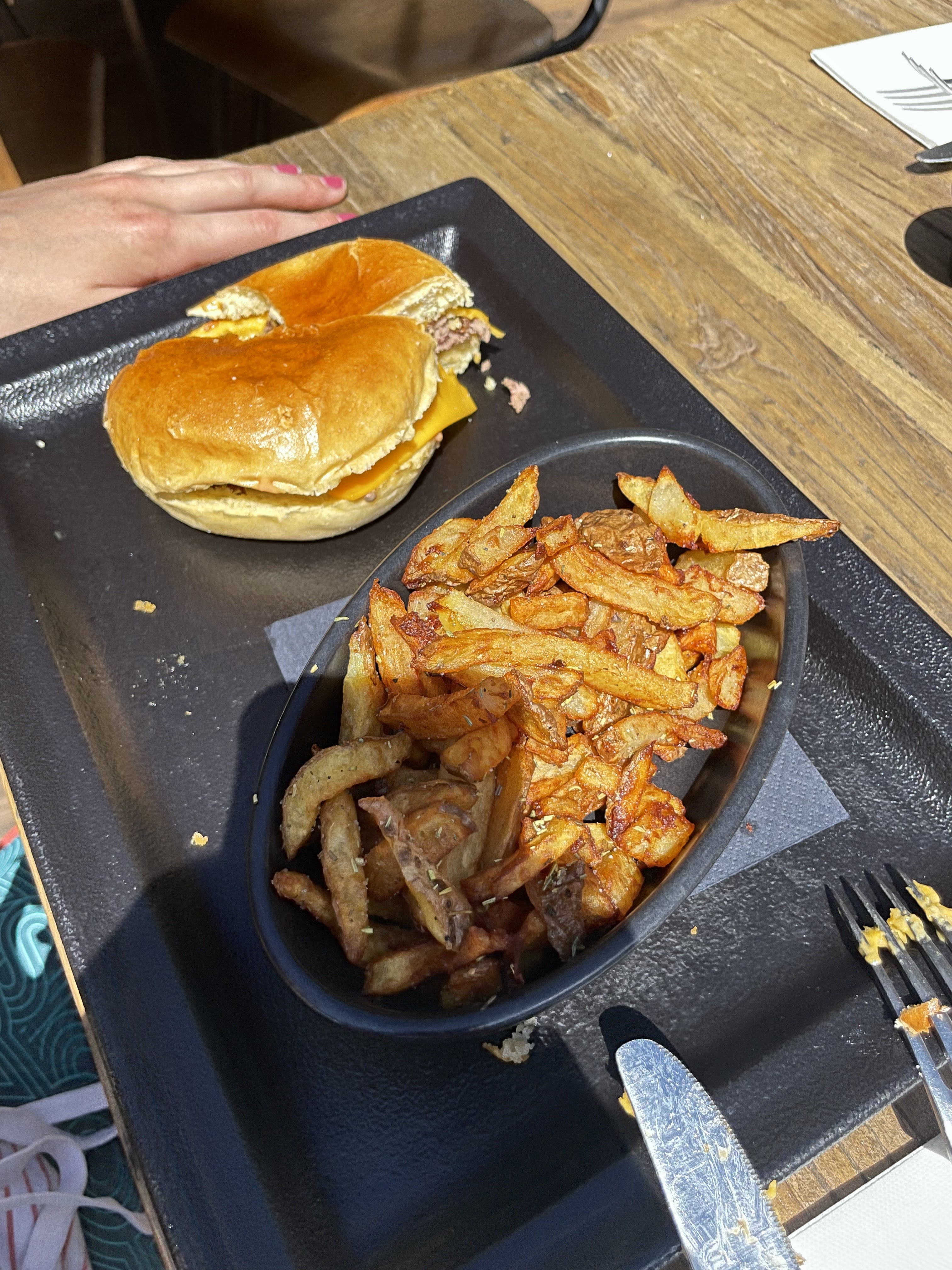 Nous avons mangé à 4, sans avoir réservé, dans cet excellent restaurant avec une terrasse panoramique offrant une très belle vue sur le port de plaisance notamment. Burgers excellents et service niquel ! Un peu d’attente s’expliquant par une salle comble mais rien de gênant. Les prix sont honnêtes et le personnel très sympathique. Nous recommandons volontiers !