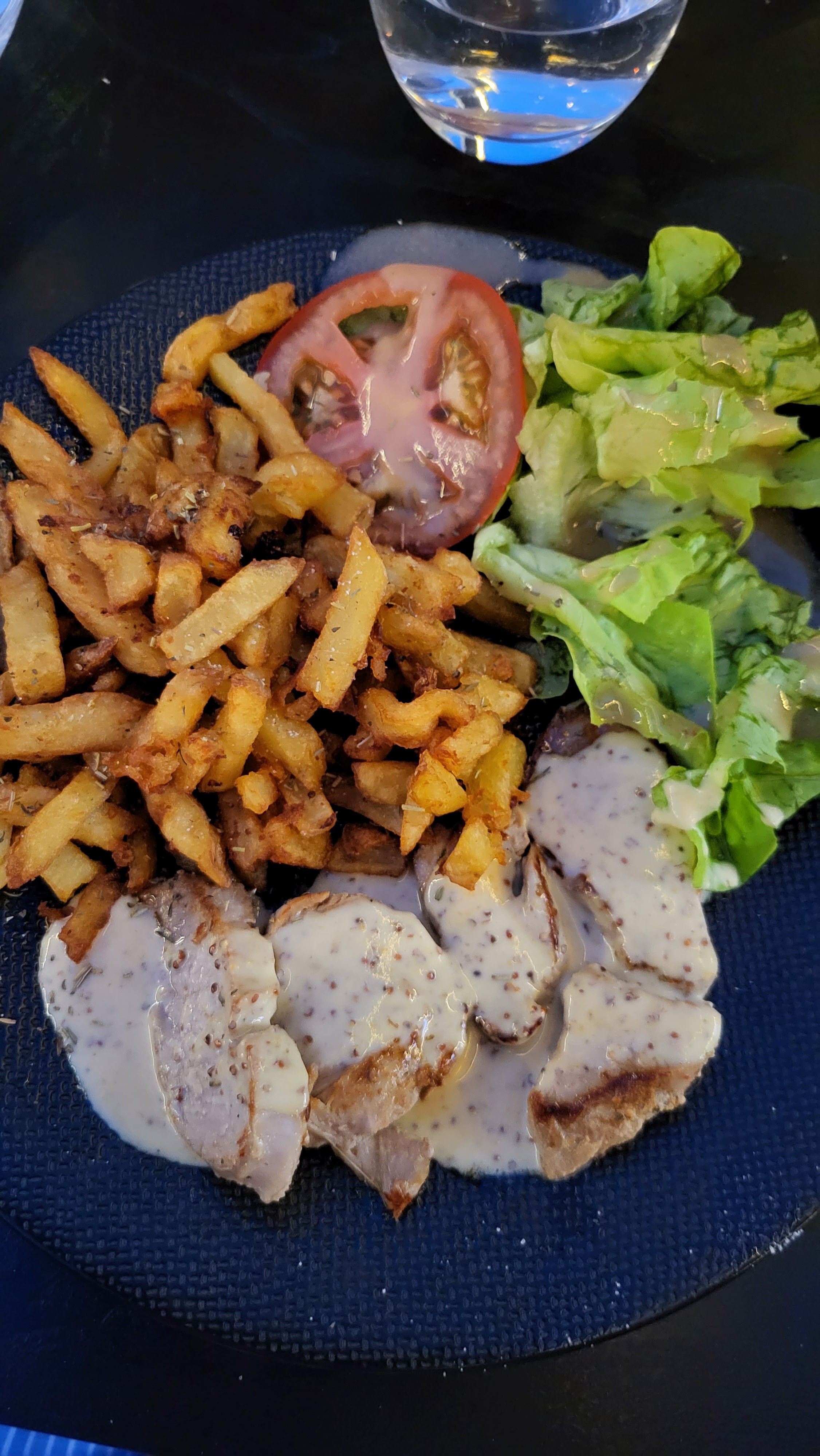 Nous avons très bien mangé: pizza avec de bons ingrédients, escalope de veau généreuse et bonne. De très bonnes frites maison bien trop rare dans les restaurants! Equipe jeune, dynamique et amusante qui a su prendre en compte notre contrainte d'horaire avant notre retour en Ferry. Nous recommandons fortement! Merci à vous!