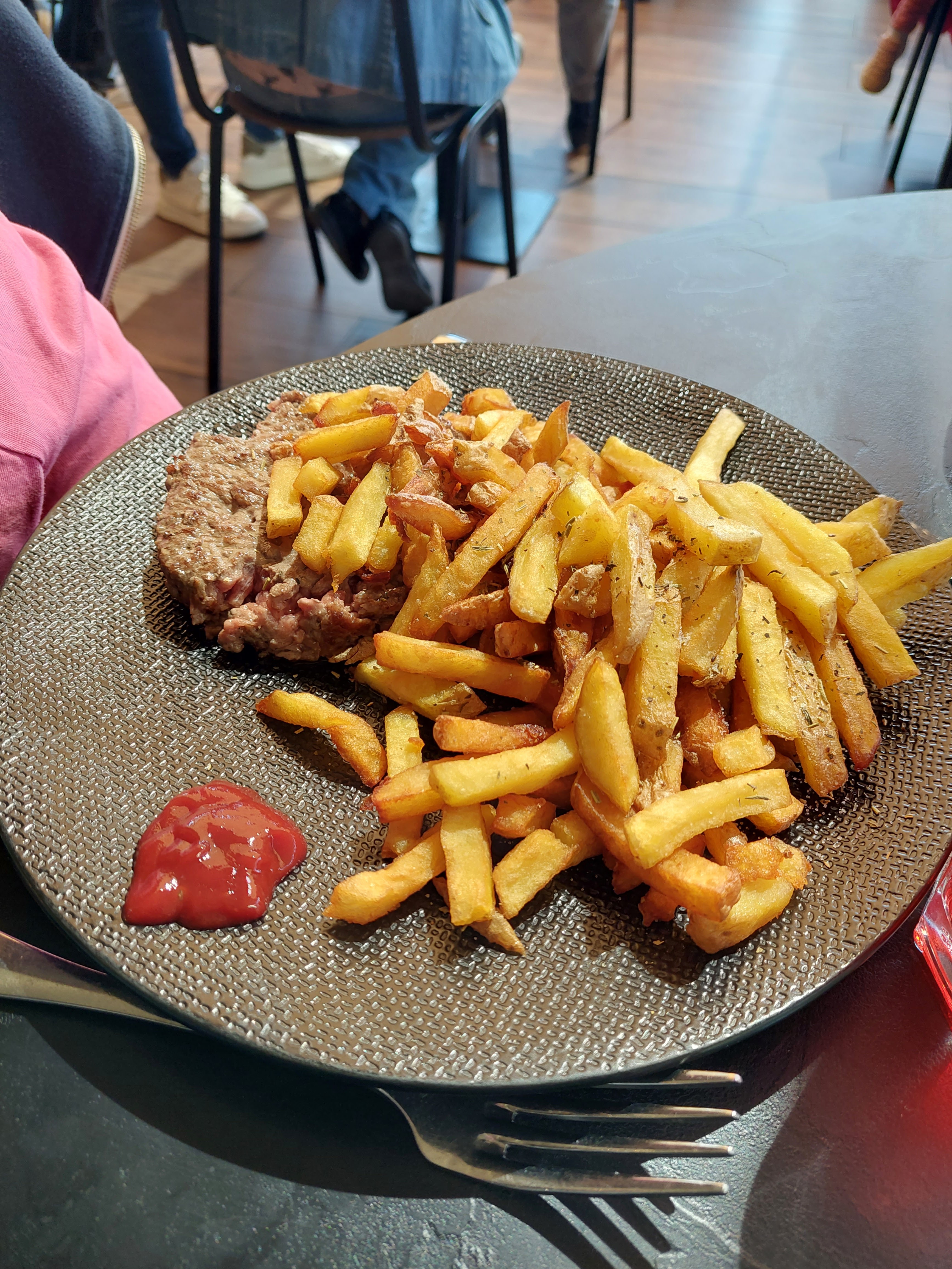 Ce que je retiens de ce restaurant c'est l'attente, nous avons failli partir tellement que l'arrivée des plats etaient longue et pourtant ce n'était pas full . Les serveurs étaient sympathiques mais le service pas au rendez vous.. Nous étions une Table de 3, nous avons commandé 3 boissons, une première boisson est arrivée suivi d'une deuxième 20mn plus tard et de la troisième 10mn après ! Le temps que les deux autres personnes ait leurs boissons la première avait déjà fini son verre. Ensuite attente de 1heure et j'exagère pas pour avoir le plat principal ! Sinon les plats étaient dans l'ensemble bons et les frites faites maison très bonne ! Dommage que l'attente est tout gâché..