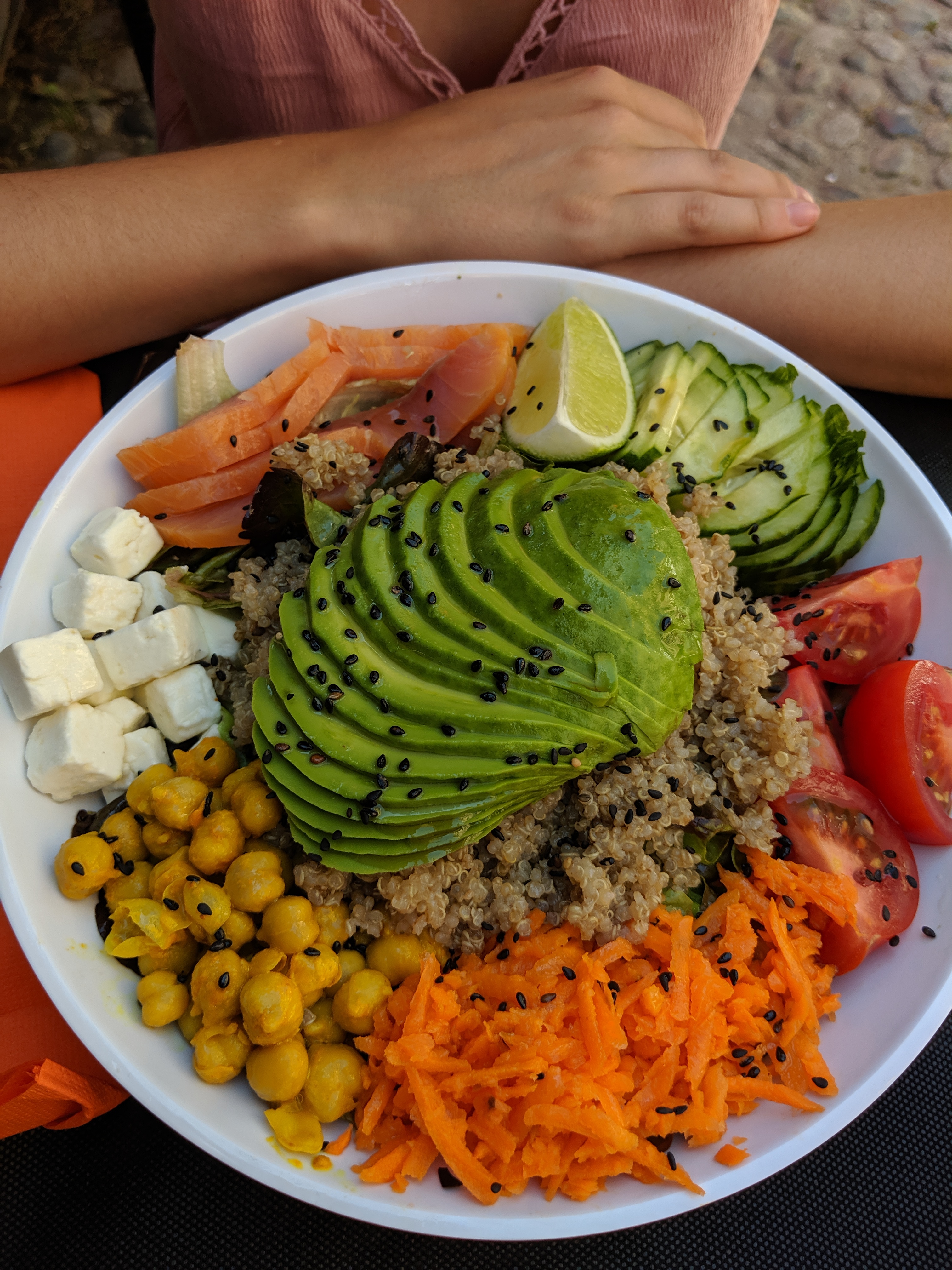 Accueil sympathique. Carte très riche. J’ai opté pour le bowl végétarien et la mousse de yaourt en dessert. Je me suis régalé. Les produits sont frais et parfaitement assaisonnés. L’emplacement est très agréable. Terrasse protégée et chauffée. Je recommande.