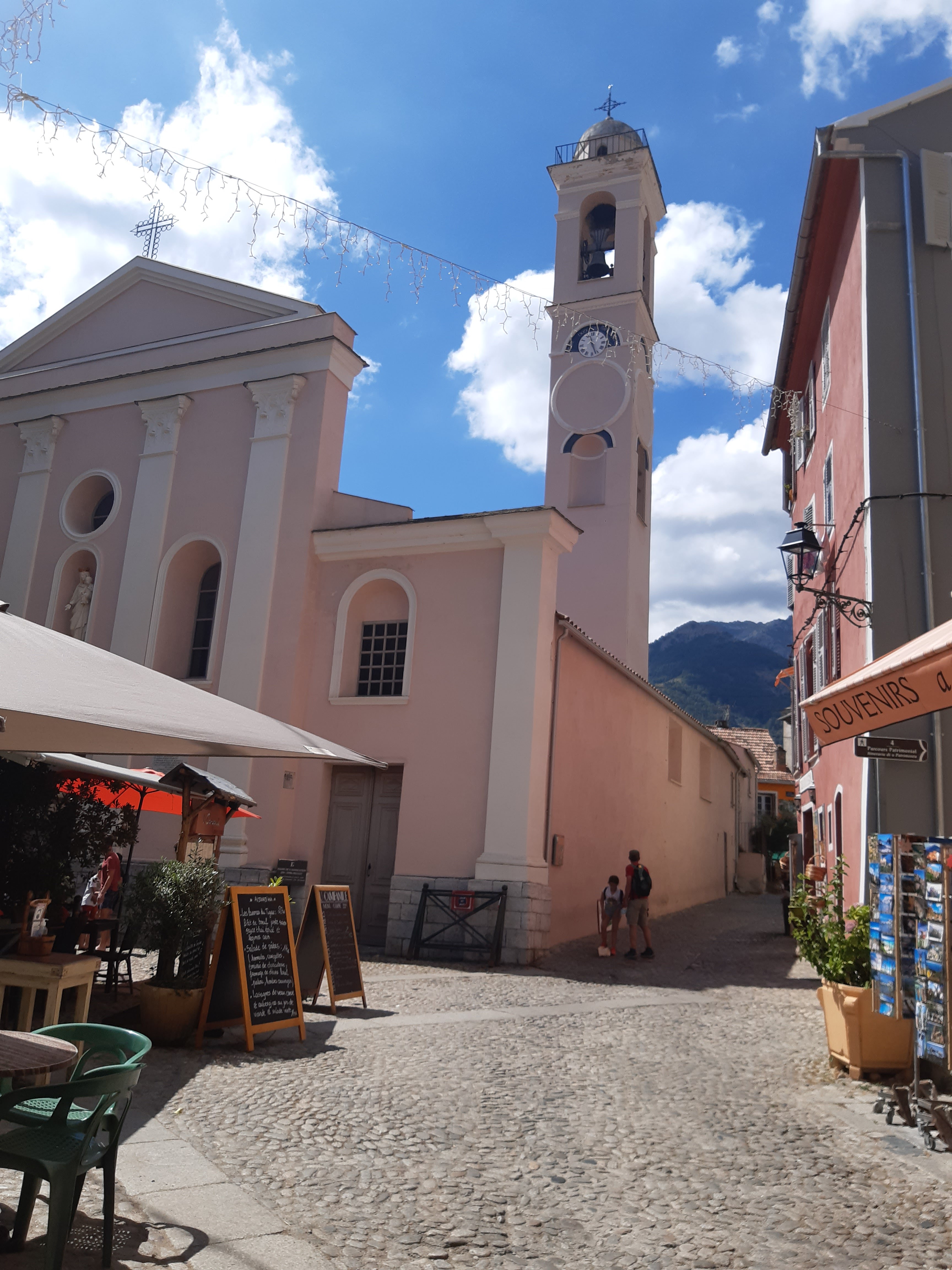 Attirée par la terrasse ( sans doute par ses couleurs), et malgré l'absence de réservation, on nous a gentiment trouvé une petite table sympa au pied de l'église. Les produits cuisinés sont excellents et frais ( terrine de sanglier au myrthe, burger revisité excellent) je note également l'originalité des plats servis. On y a passé un très agréable moment.