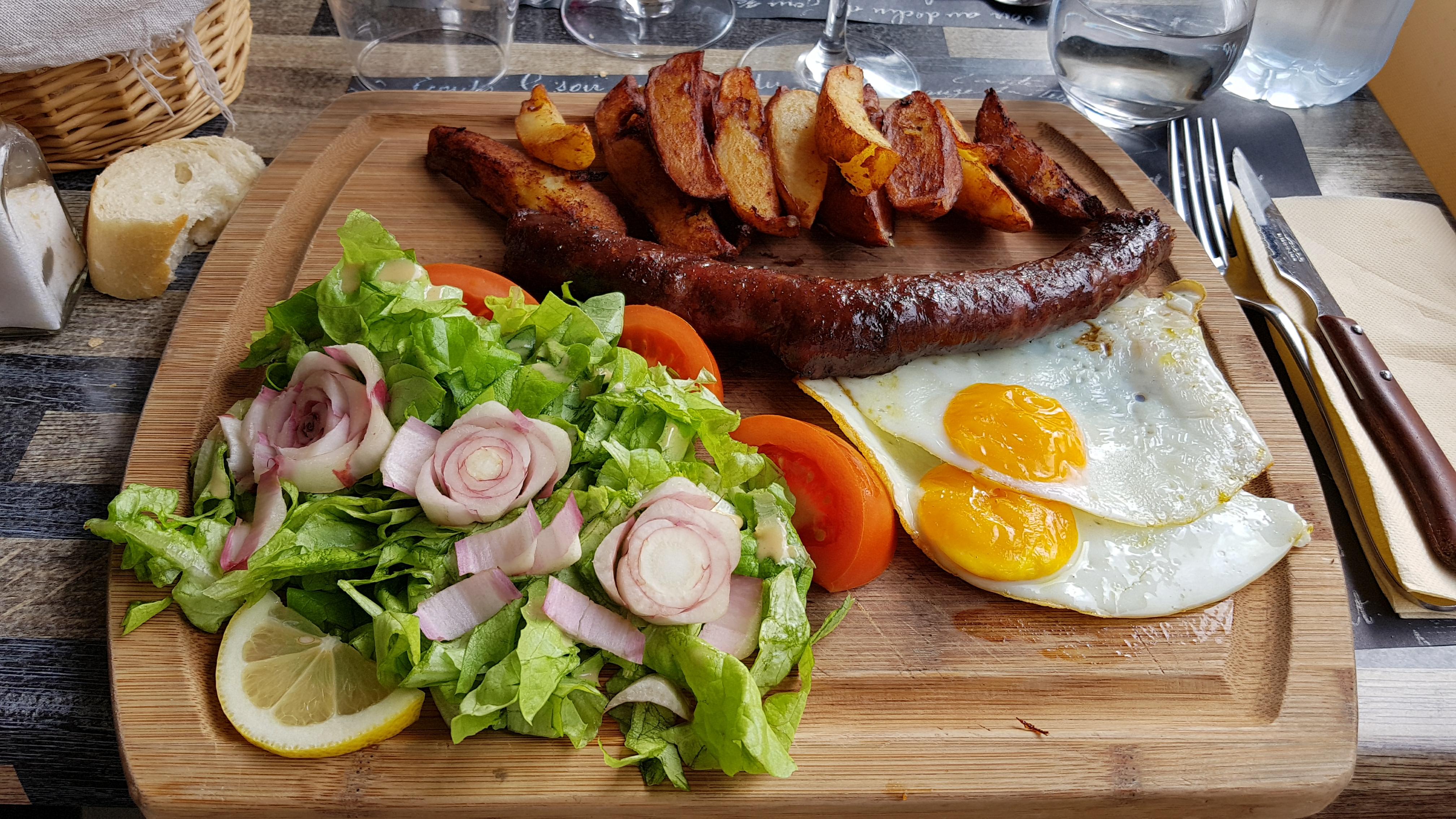 Accueil correct et aimable , salade copieuse et goûteuse, dessert maison, terrasse agréable (période où il n'y a pas trop de circulation, sinon grande salle), prix correct. Je recommande.