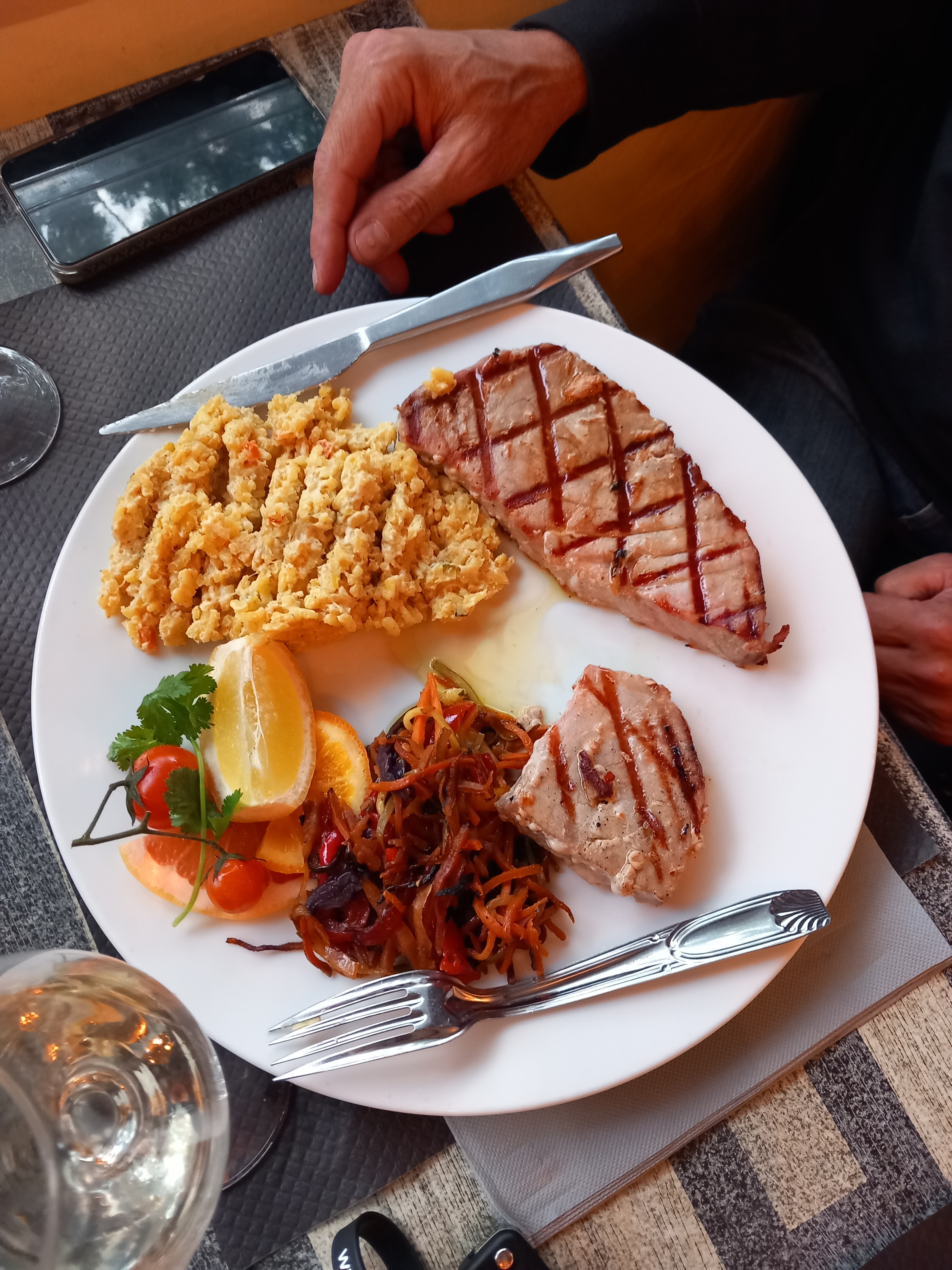 Parfait. Accueil, poisson grillé extra. Carpaccio d'espadon délicieux. Beaucoup de locaux, donc une bonne adresse. Le patron omniprésent et très sympa. Et très copieux !!!👍👍👍