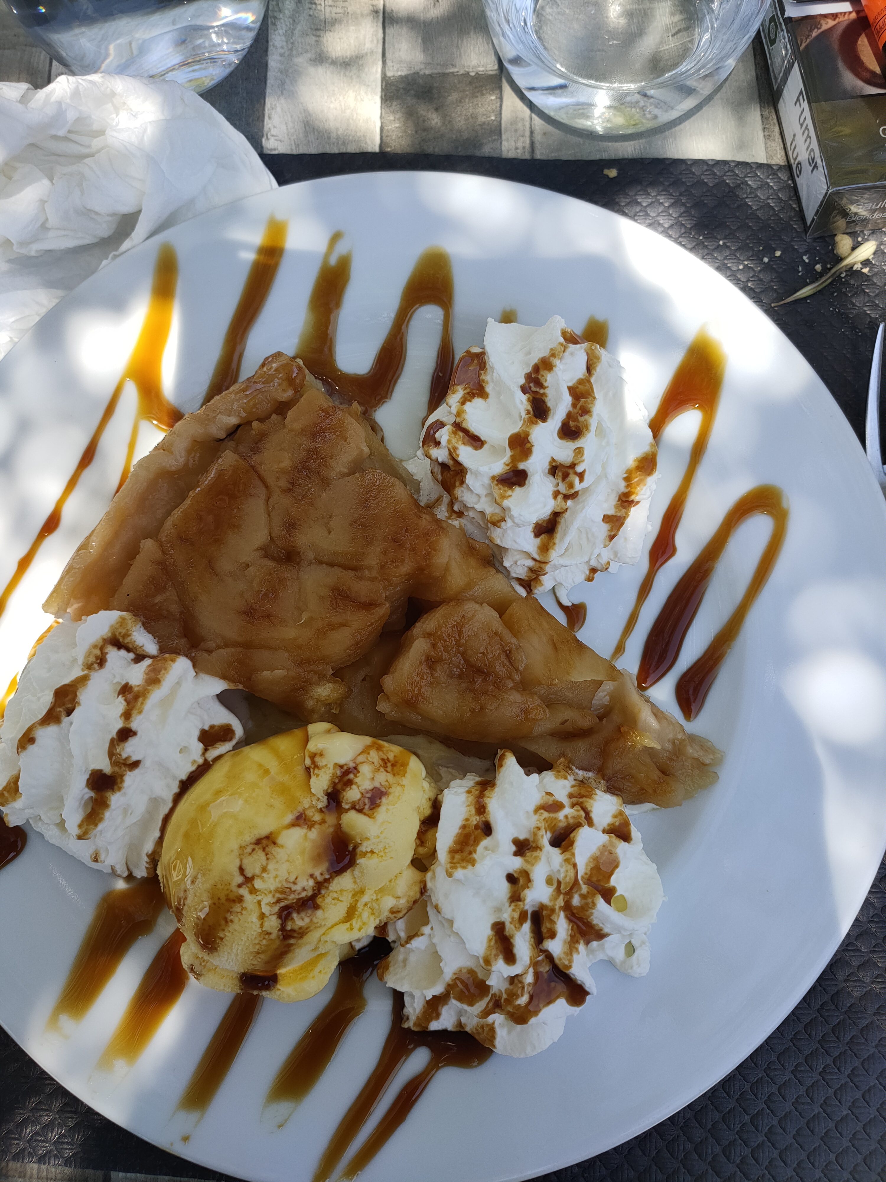 Les calamars extra, la sauce un régal, bonne cuisine. Dessert maison delicieux