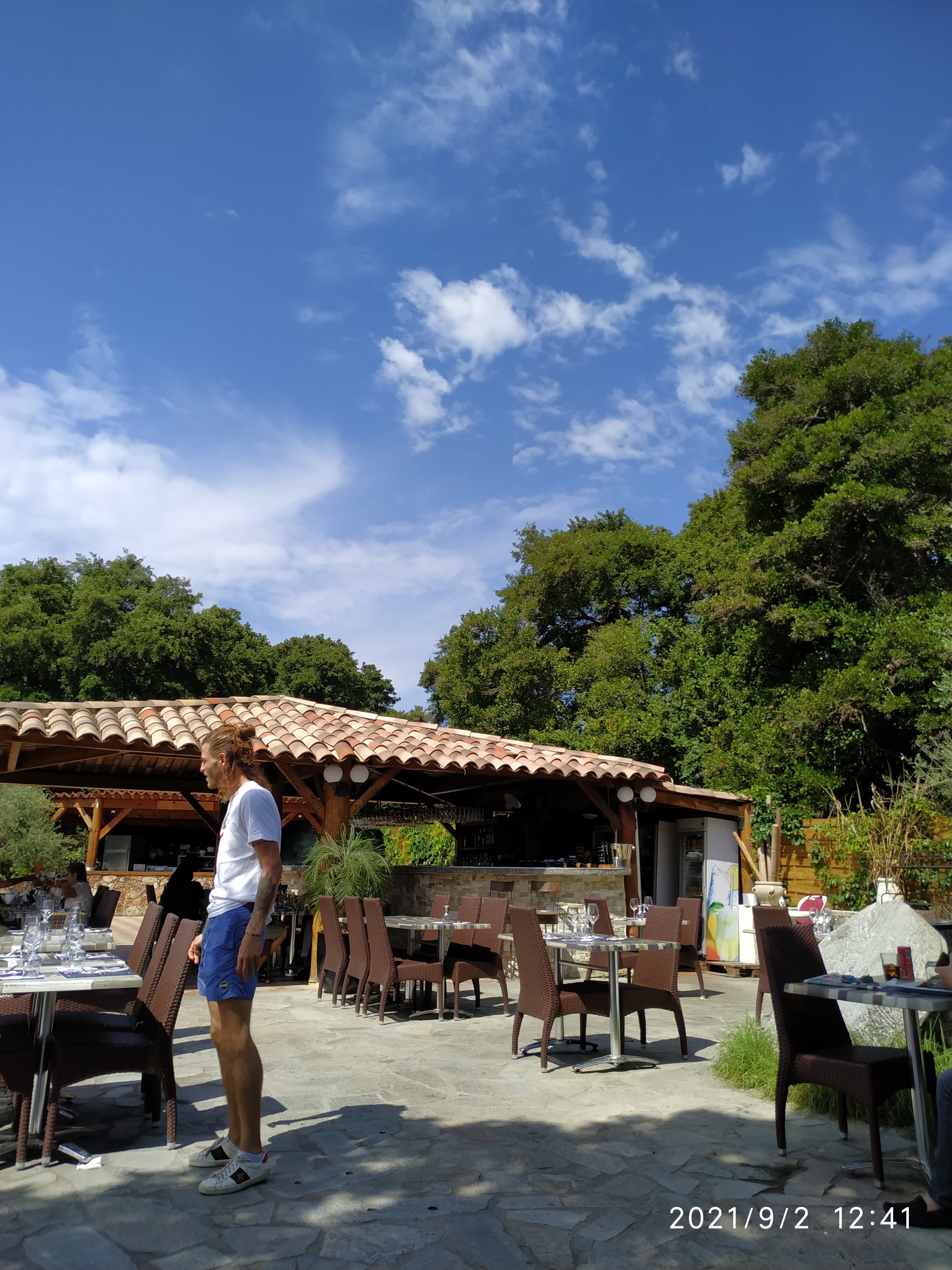 Nous nous sommes arrêtés pour prendre un café, le cadre est magnifique, avec de nombreuses amphores impressionnantes .... Le café nous a été offert... Vive la Corse...nous y retournerons manger l'année prochaine... N'hésitez pas, allez y....
