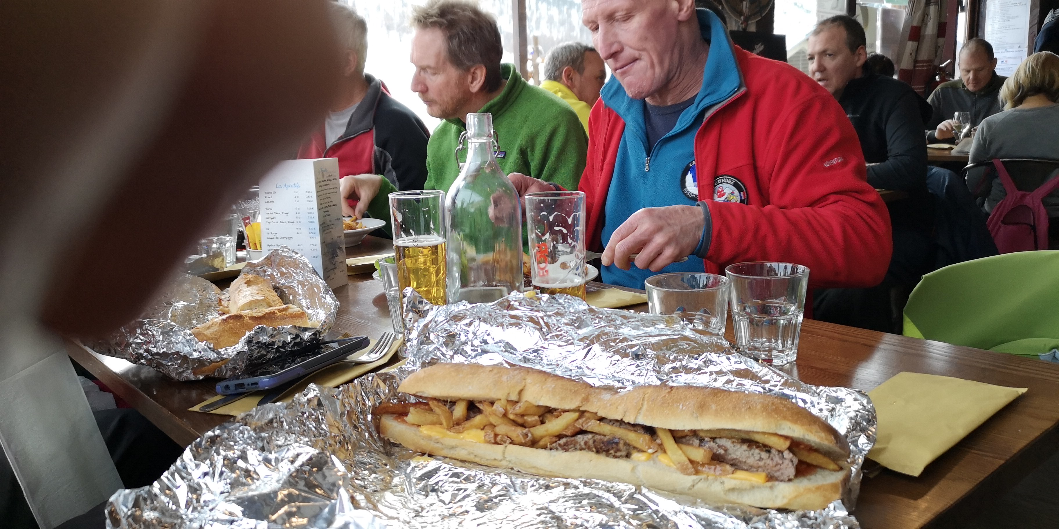 Local proche des pistes de ski. Bonne pause déjeuner, avec des baguettes vraiment énormes et d'excellentes frites. Prix moyens, peut-être un peu bon marché par rapport au reste des endroits du pays.