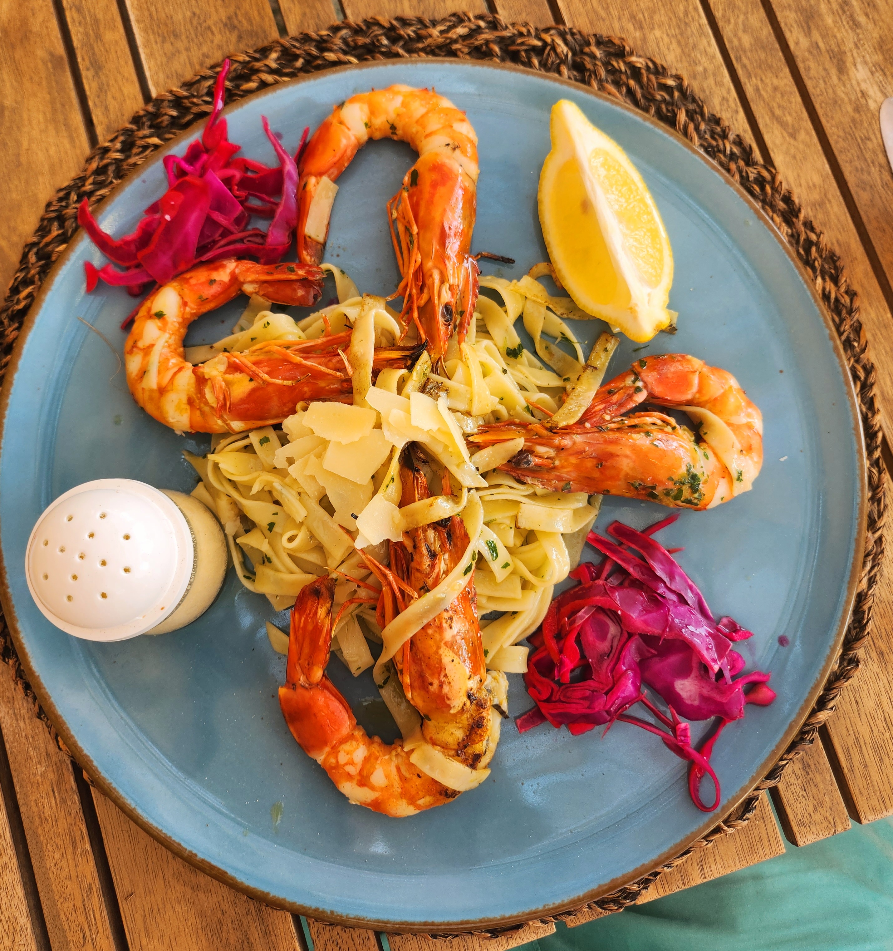 Je n'ai pas mangé ici, j'ai juste loué une chaise longue. Le personnel est très arrangeant. Un transat ne m'a coûté que 15 euros pour une journée entière. Je ne peux que recommander !