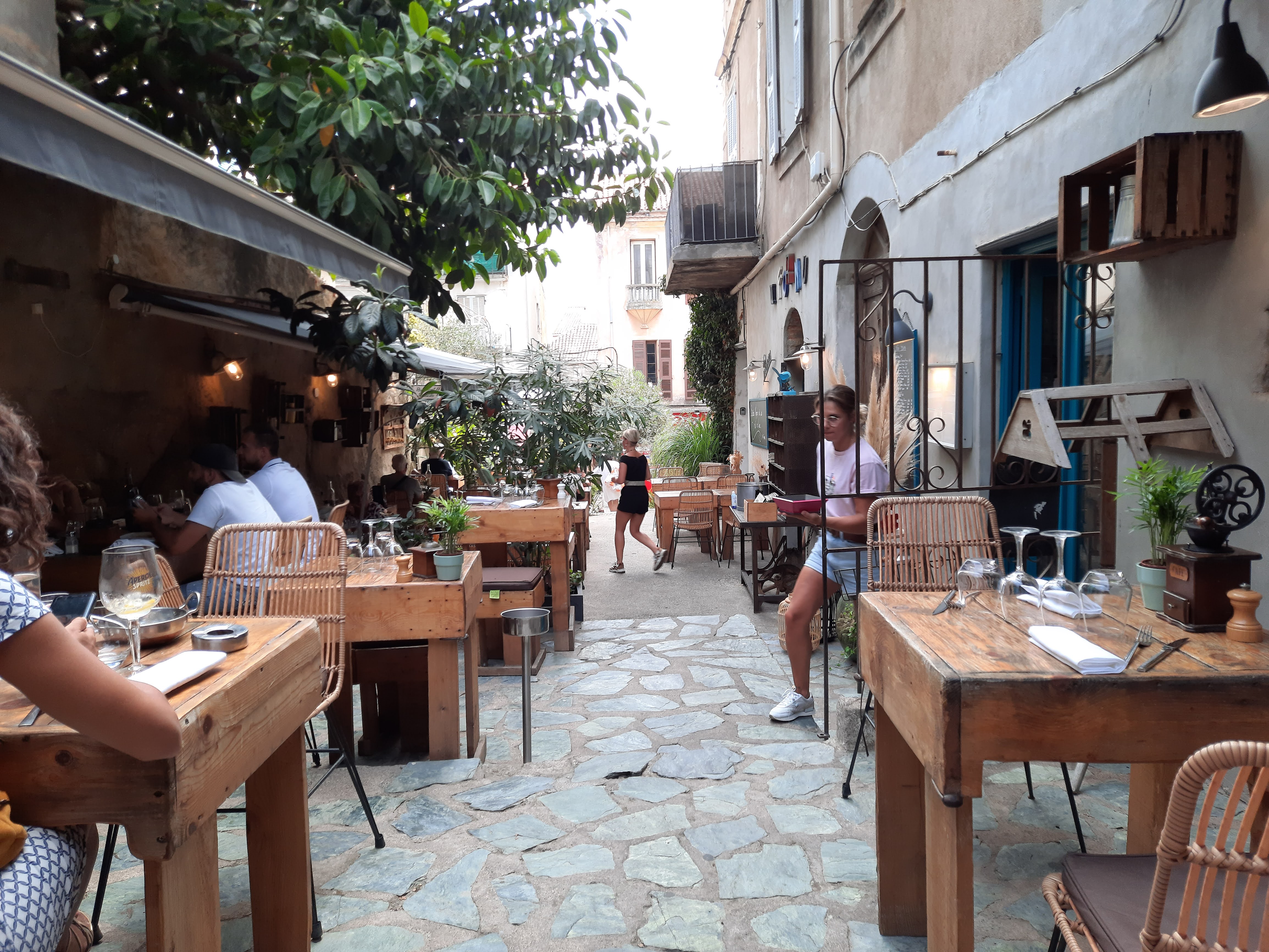 Magnifique cadre! Dans une petite ruelle très calme! Loin de l'agitation du port. Cuisine soignée! Vins au verre de qualité, mériterait 3-4 degré de moins pour les rouges. Ne pas venir ici serait une erreur.