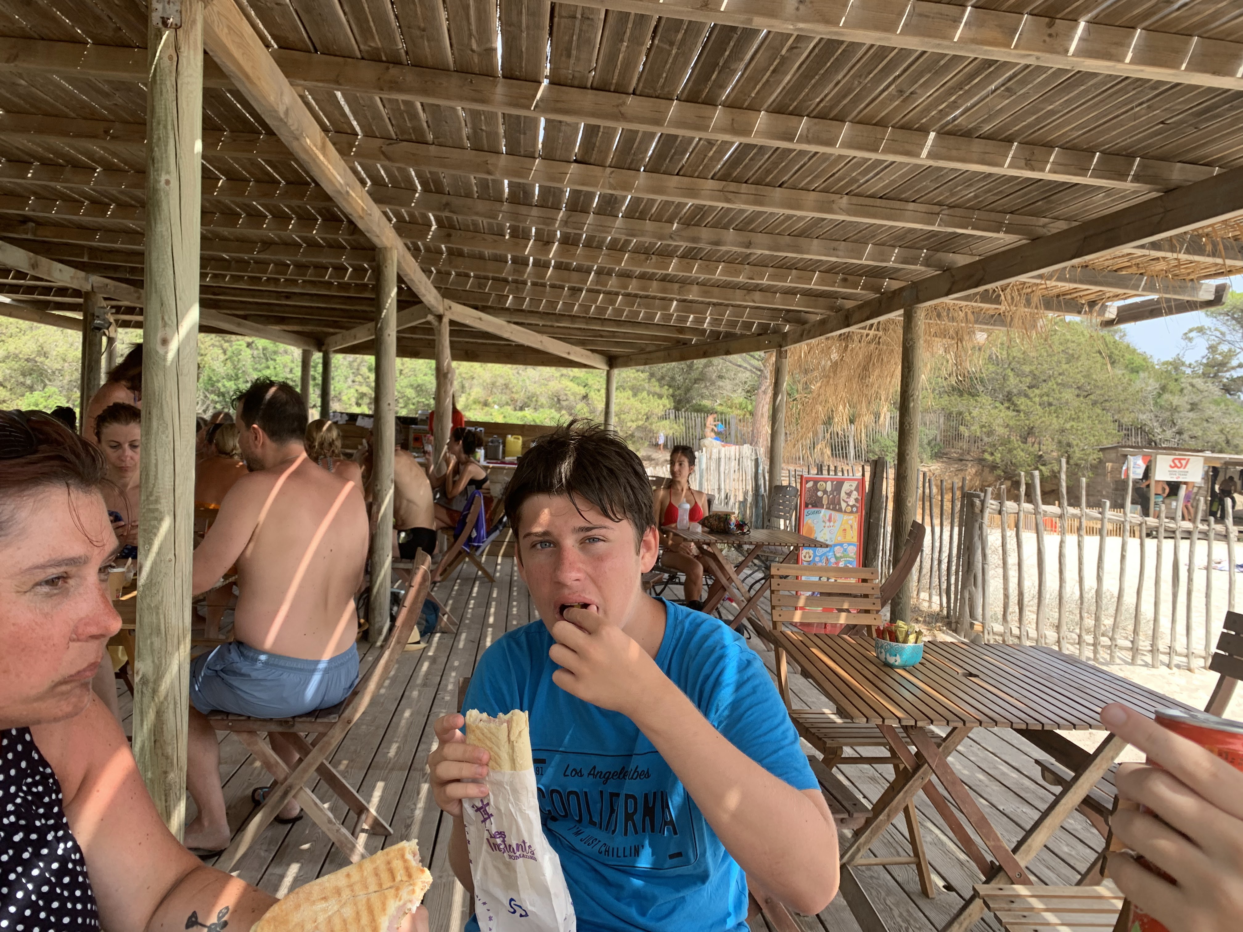 Parfait pour manger rapidement sur place ou à emporter. Salade du jour à 8€, panini à 6,50, boisson à 2€ etc. Restauration sur la plage donc très pratique. Il faut prévoir de l’espèce pour le payement.