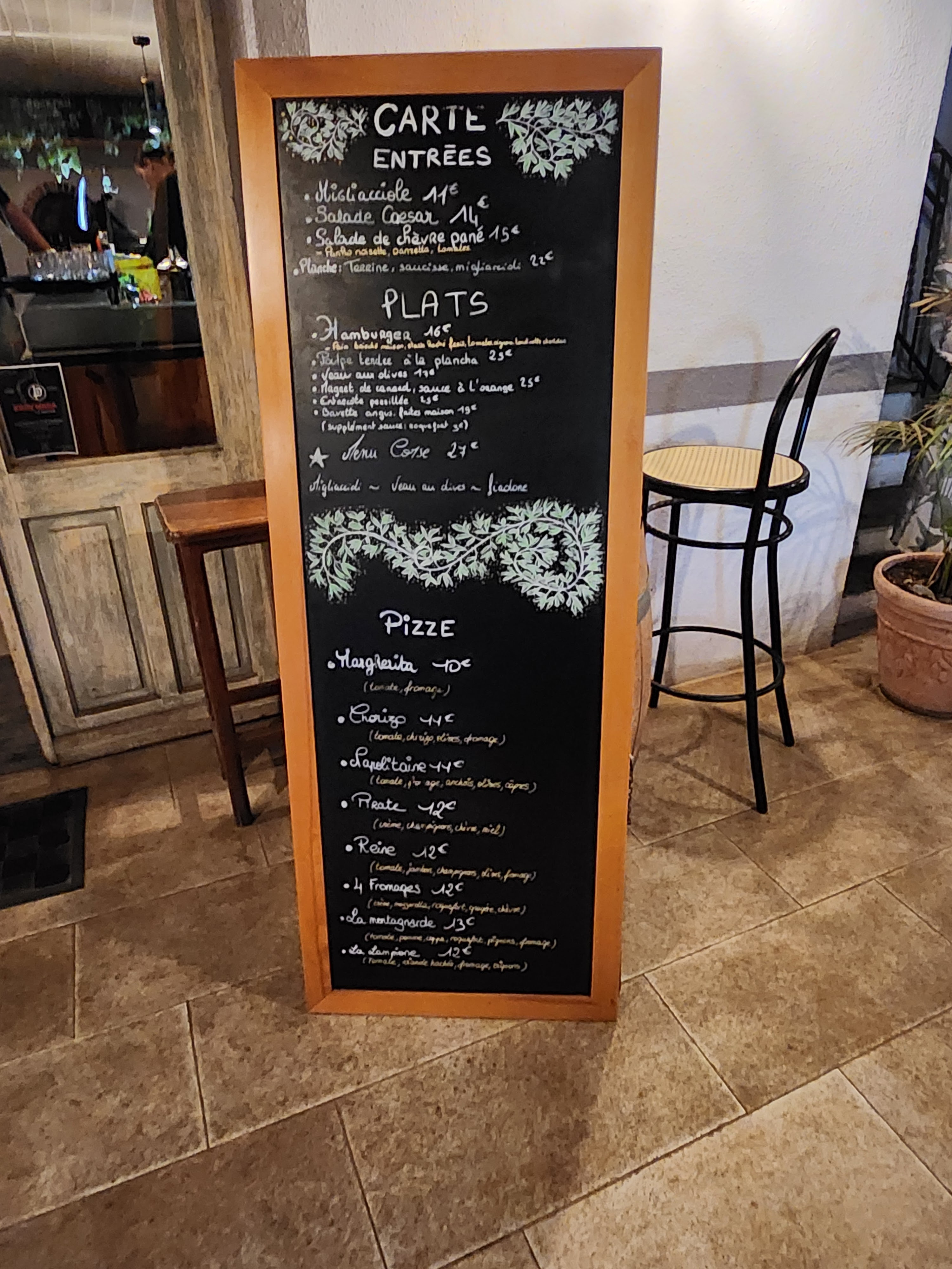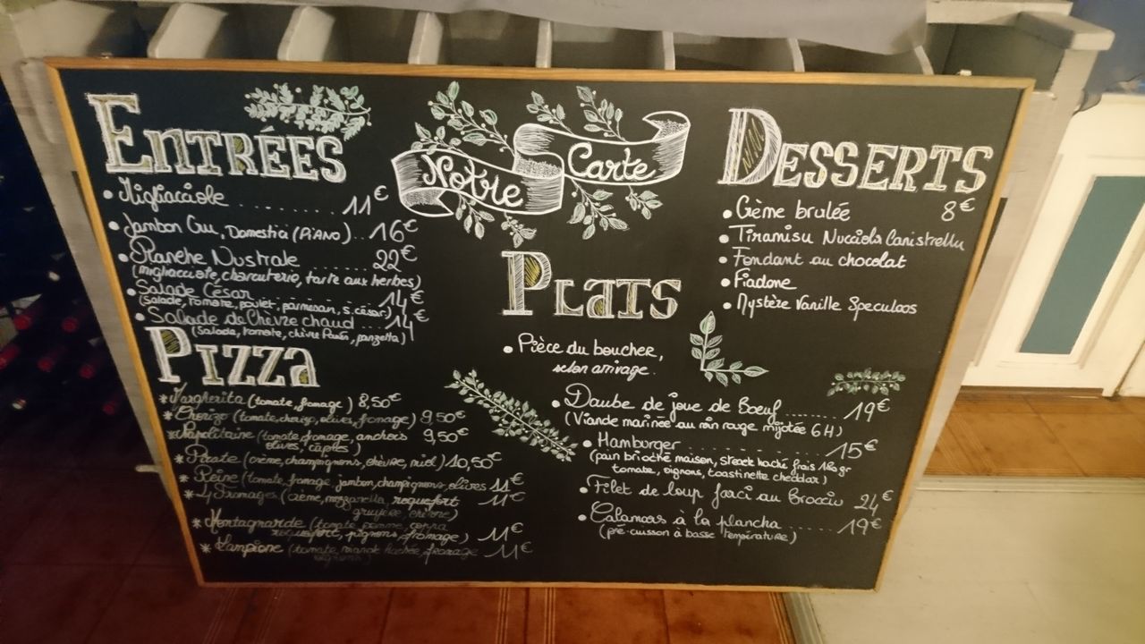 Bonne nourriture, le menu change aussi. Le chef a vraiment du bon, du bon vin et aussi beaucoup de plats corses. La performance des prix est également bonne.