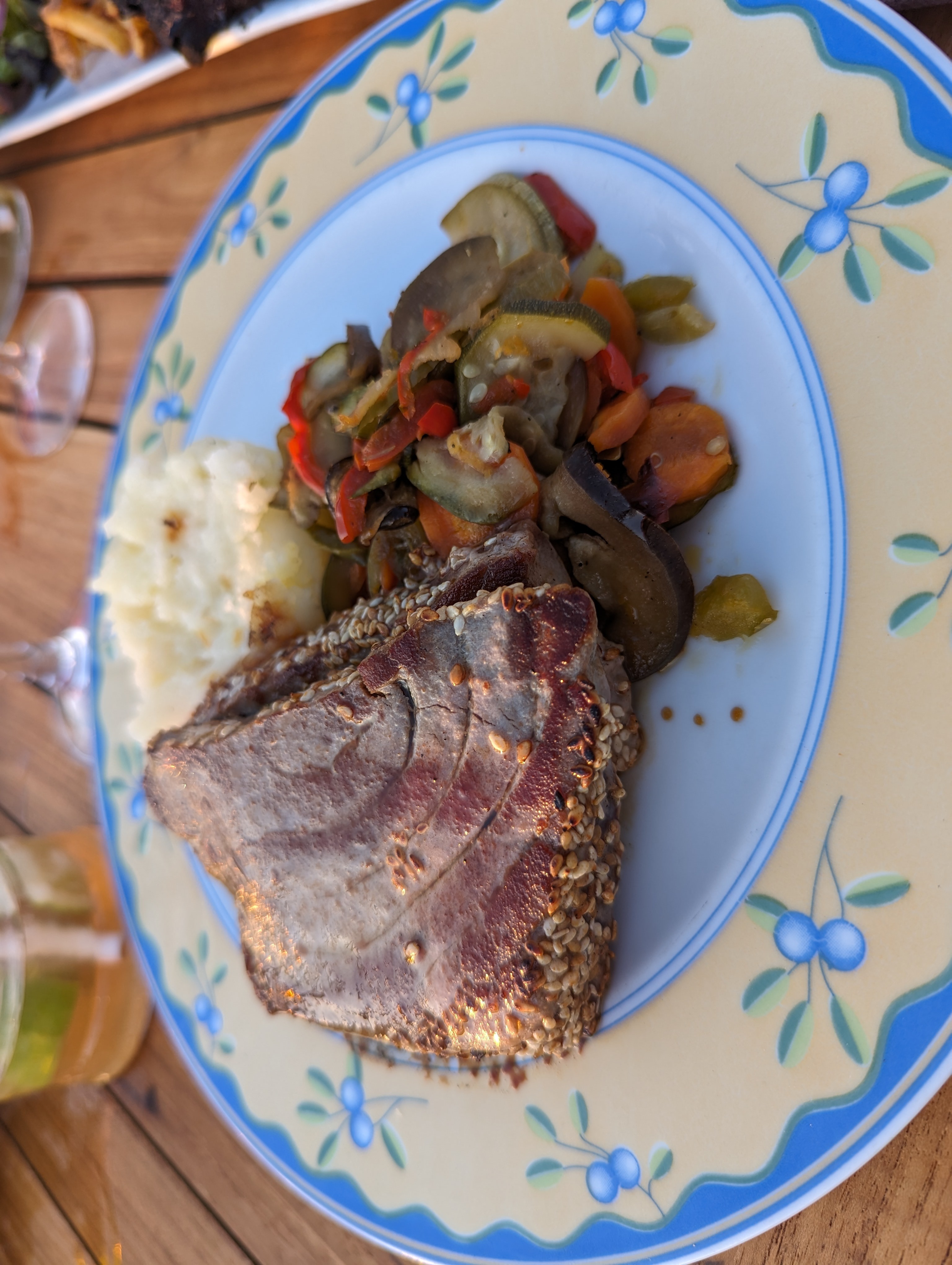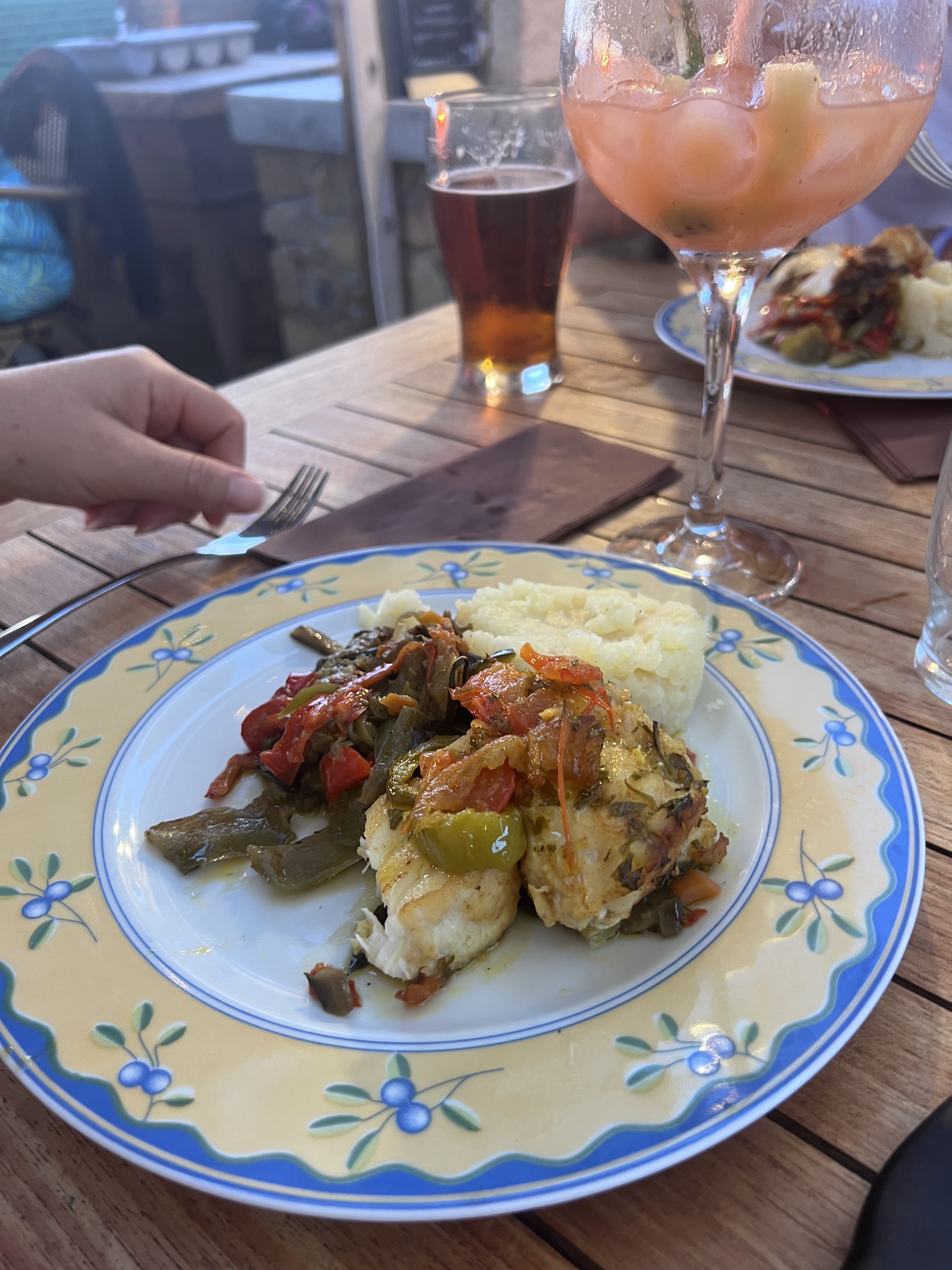 Cadre idyllique, personnel sympathique mais gros bémol, les guêpes! Nous n'avons pas pu manger sur place à cause de ça. Nous avons demandé d emballer notre repas pour le finir à notre hôtel. Le personnel a essayé de les faire fuir avec aucun résultat.... ils nous ont offerts le verre du patron pour s'excuser. Je veux finir sur une note positive, même froids c'était délicieux !!! 😀