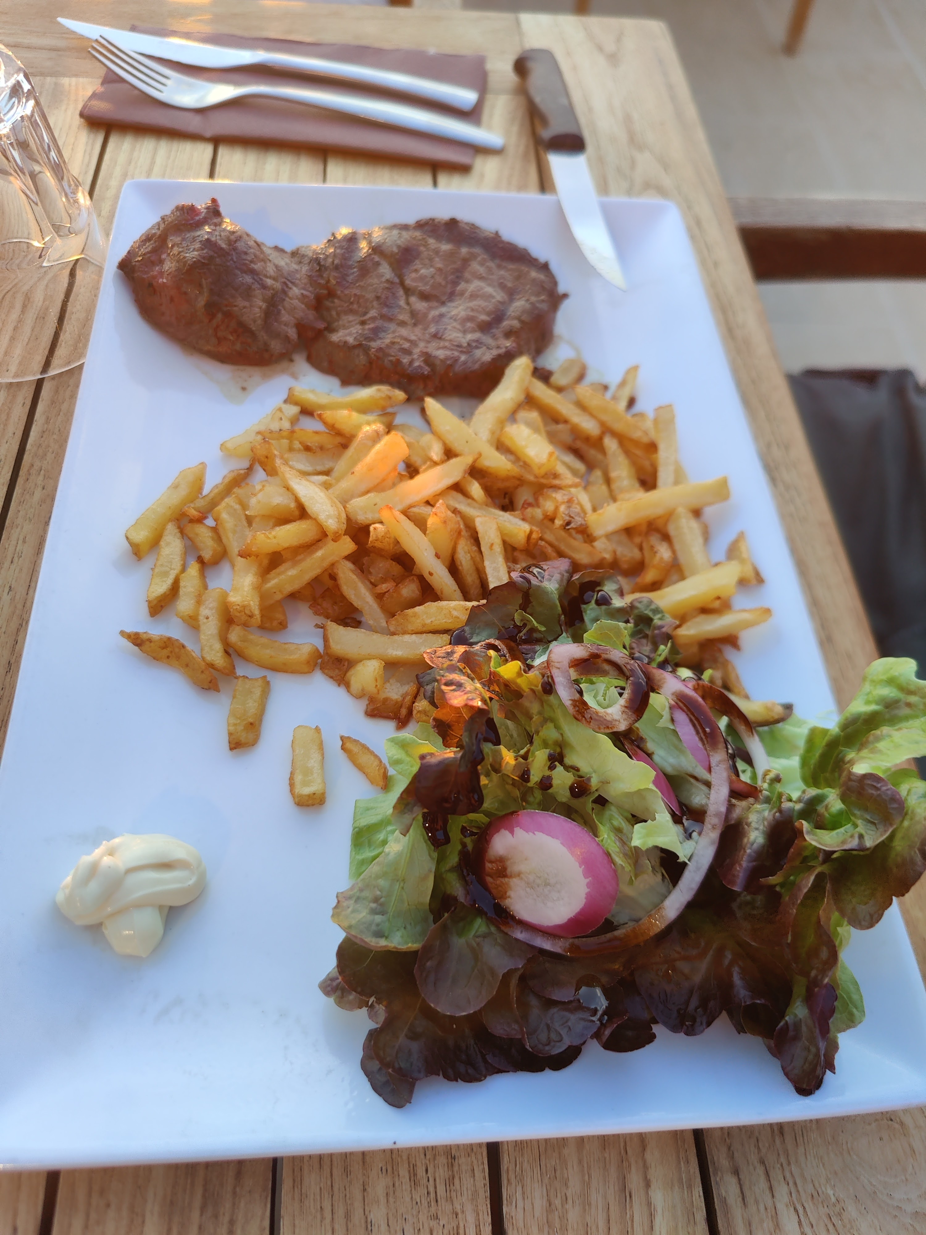Une très belle soirée. Un magnifique couché de soleil. Une cote de bœuf pour deux excellente. Rien à redire !