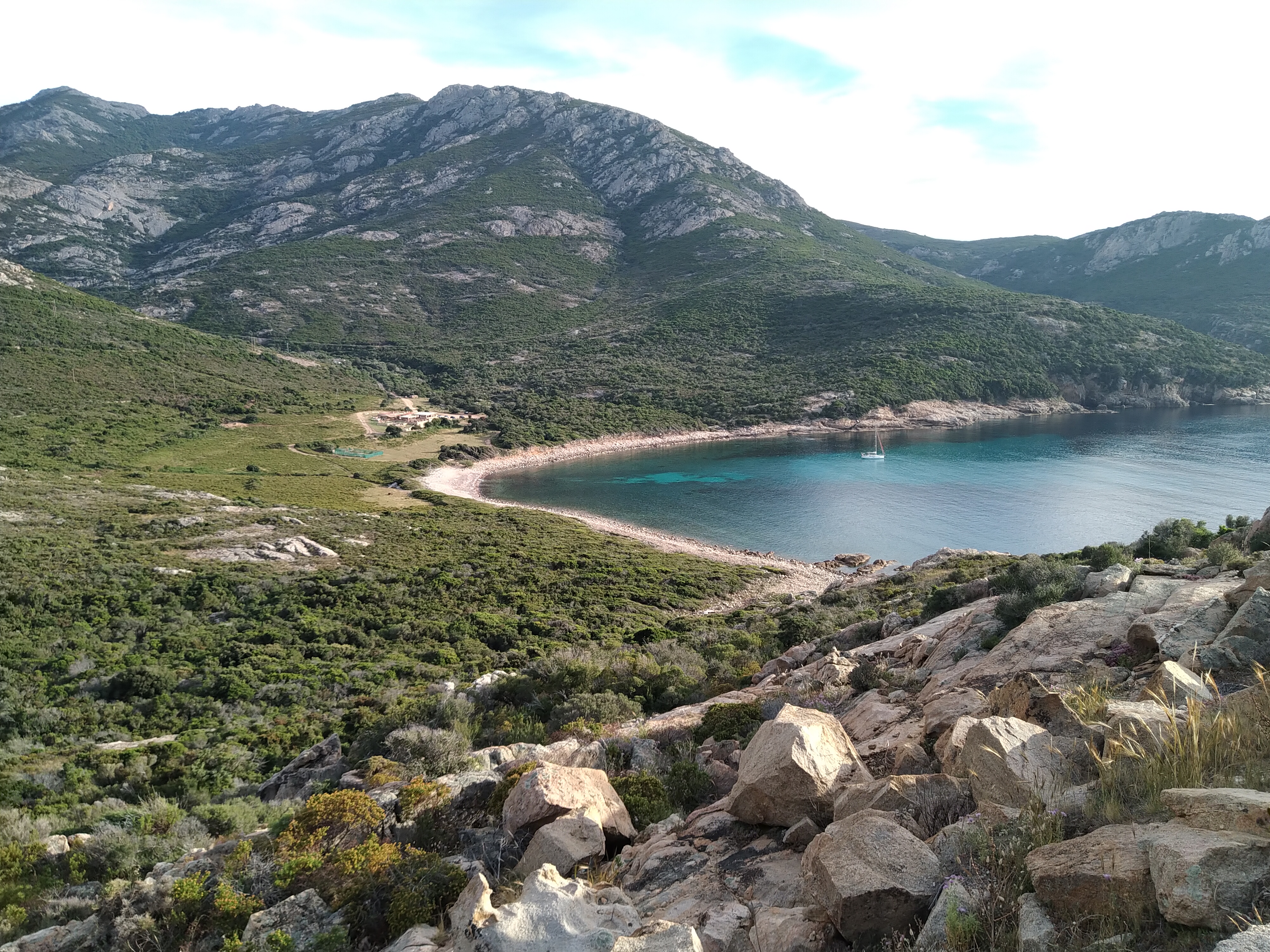 Lieu isolé et sauvage à 8 km de calvi par la côte. Surplombe une très belle baie ou les bateaux peuvent mouilles. Accessible par la plage. Parking important. Gentillesse des patrons
