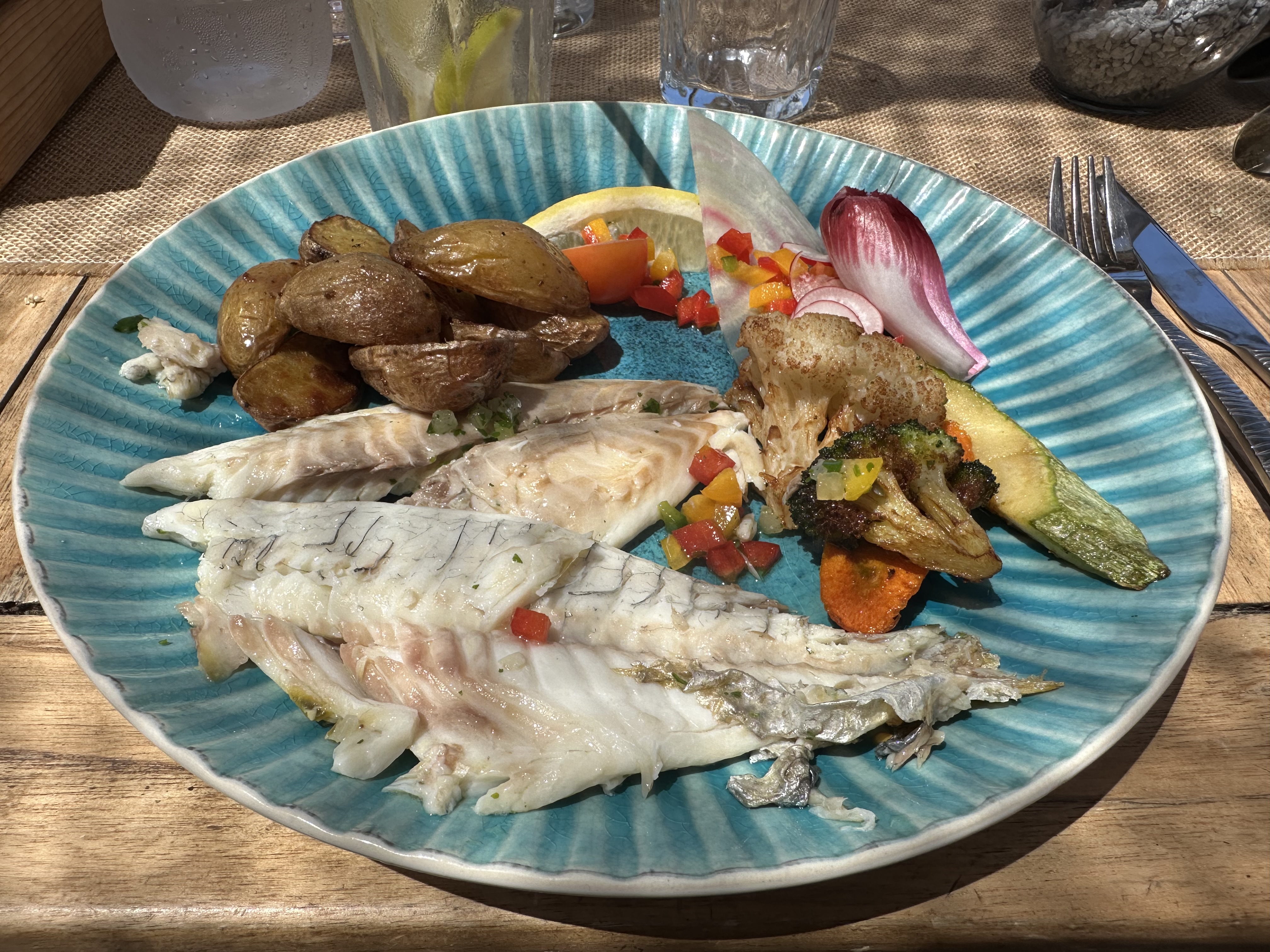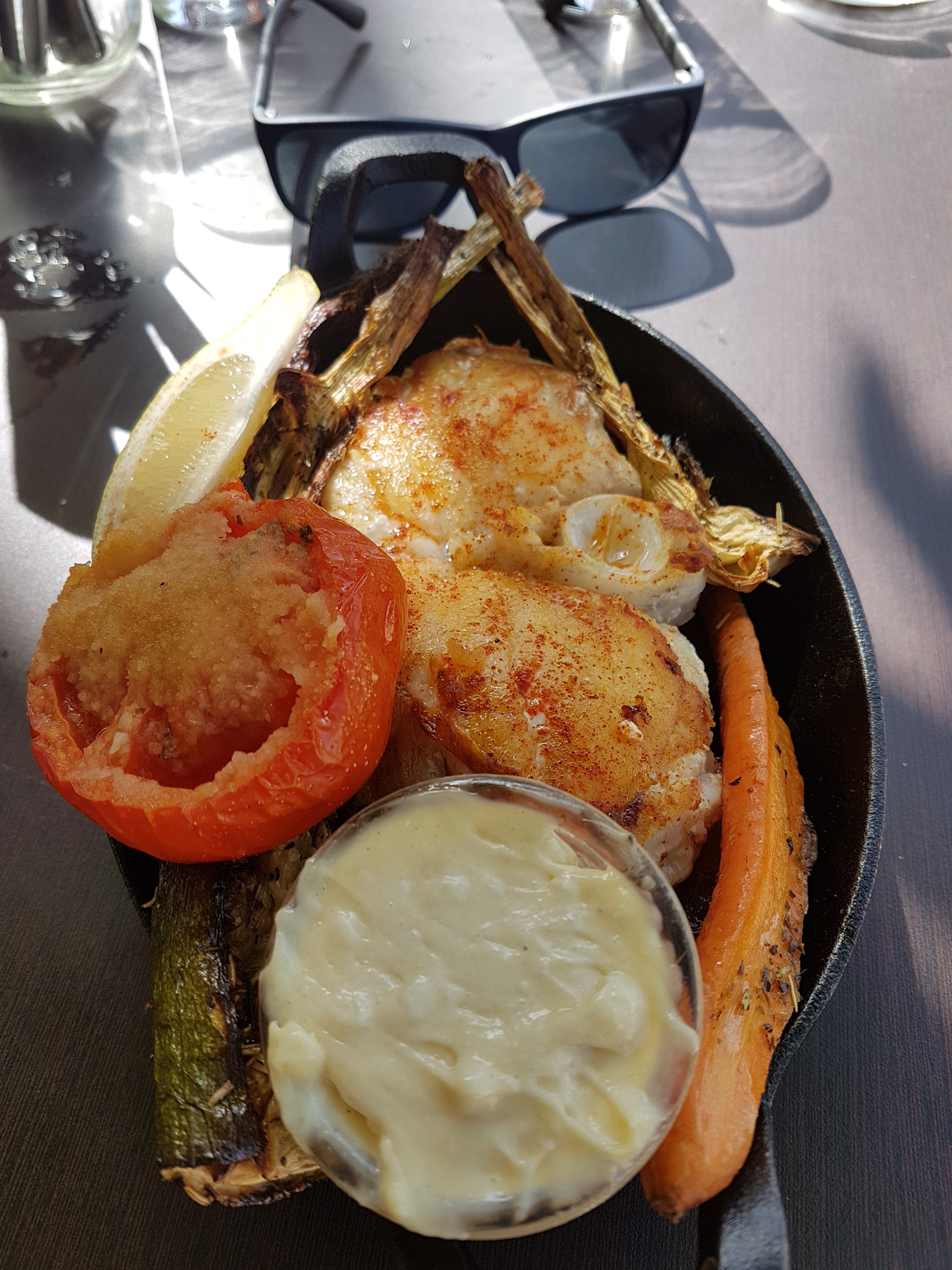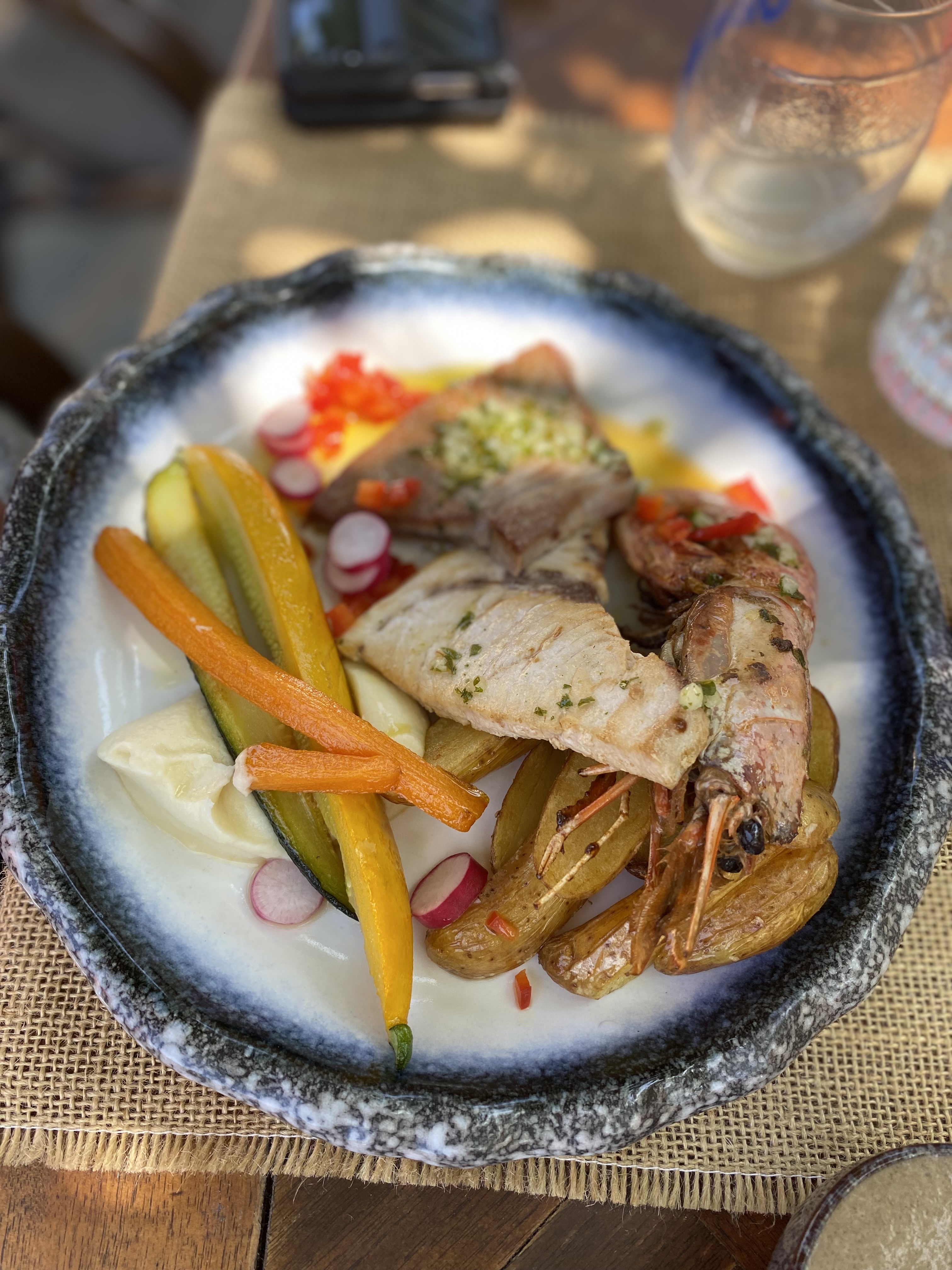 Accueil et ambiance au top Poissons délicieux péchés du jour avec petits légumes grillés... Très belle découverte surtout n'hesitez pas !