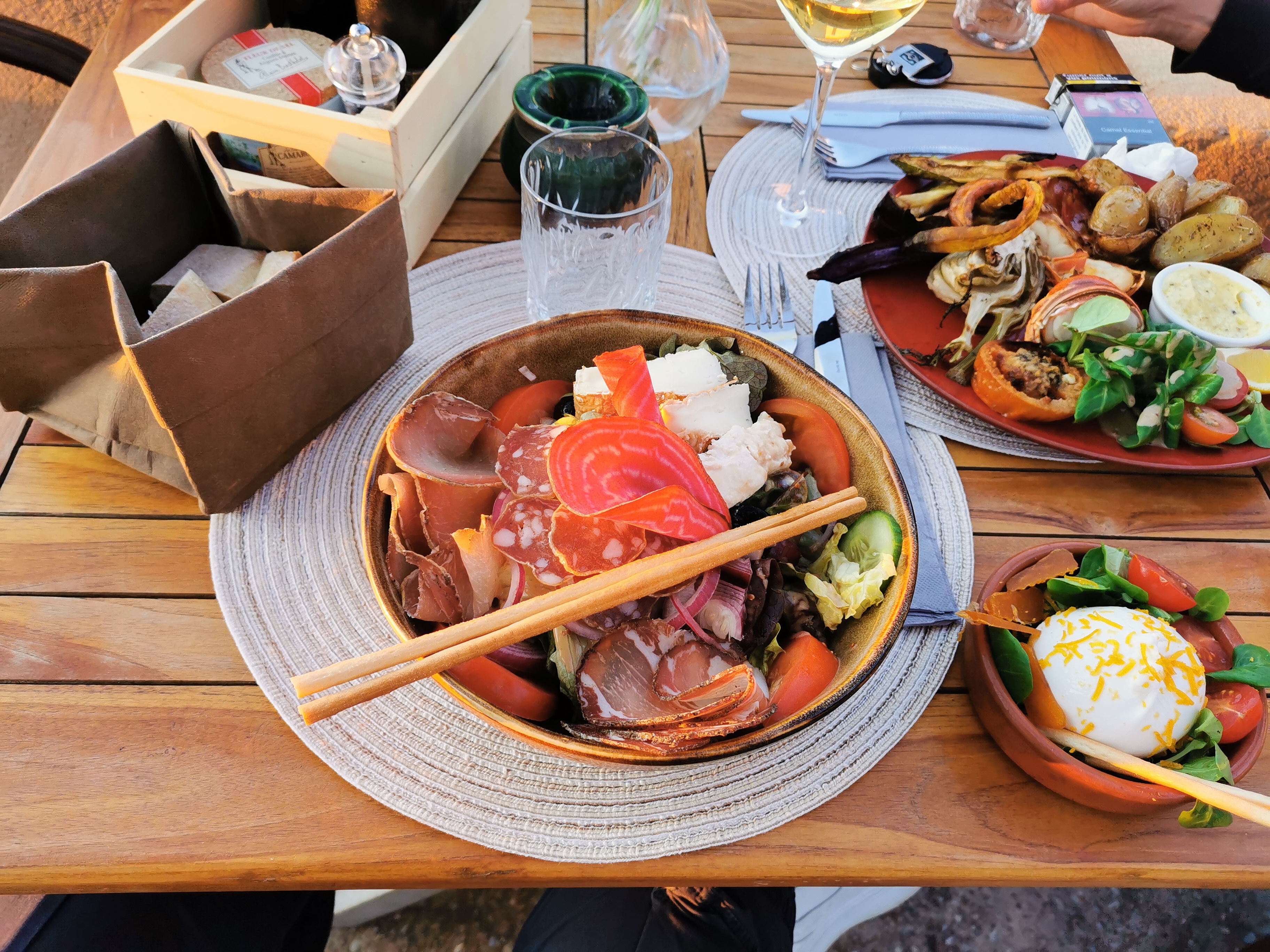 Très bonnes salades végé et corse. Même si un petit peu plus de charcuterie aurait été un peu (mais c'est de la gourmandise) Très agréable terrasse (belle vue et pas de voiture a proximité).