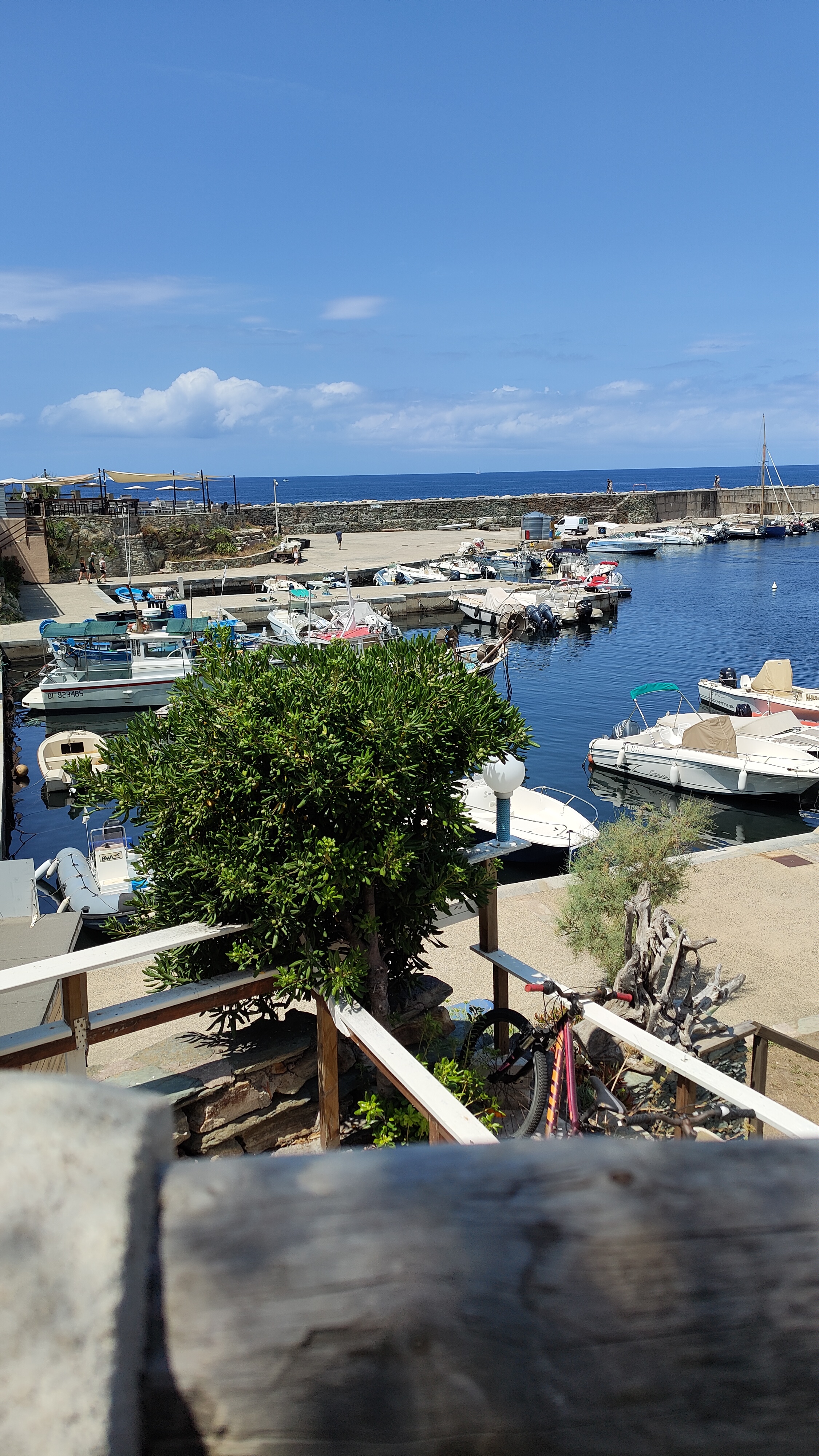 En pause dans le mag igique port de Centuri a l heure du déjeuner, nous avons été attirés par la terrasse ombragée et l acceuil agréable. Malgré la carte plutôt réduite, la qualité et les saveurs n étaient pas au rdv, seul le plat nous a suffit pour se décider à prendre dessert et café ailleurs. Poisson mal cuit, pomme terre grenaille réchauffée (sûrement surgelées) et tomate provençale grasse et décongelée aussi : 25€ !