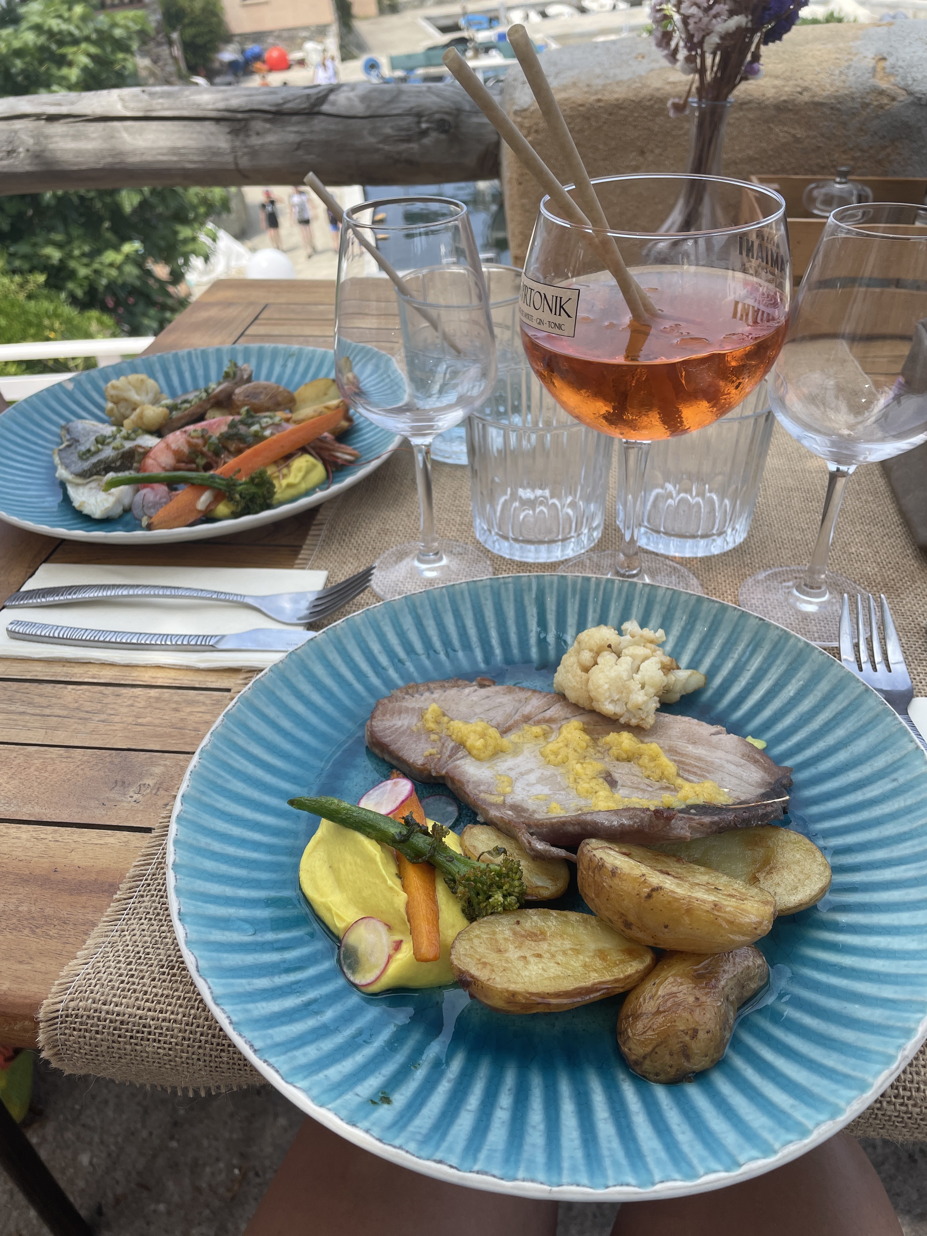 Nous y sommes allé dîner un jeudi de septembre. Il faisait doux et la vue sur la mer et sur le port était magnifique. Nous avons pris du poisson péché du jour et une entrée tomates et mozza. C'était délicieux. Le service était aussi exceptionnel. Respectueux et très efficace. Nous avons été ravis d'avoir choisi ce restaurant pour notre dîner. Franchement au top, on y reviendra sans doute.