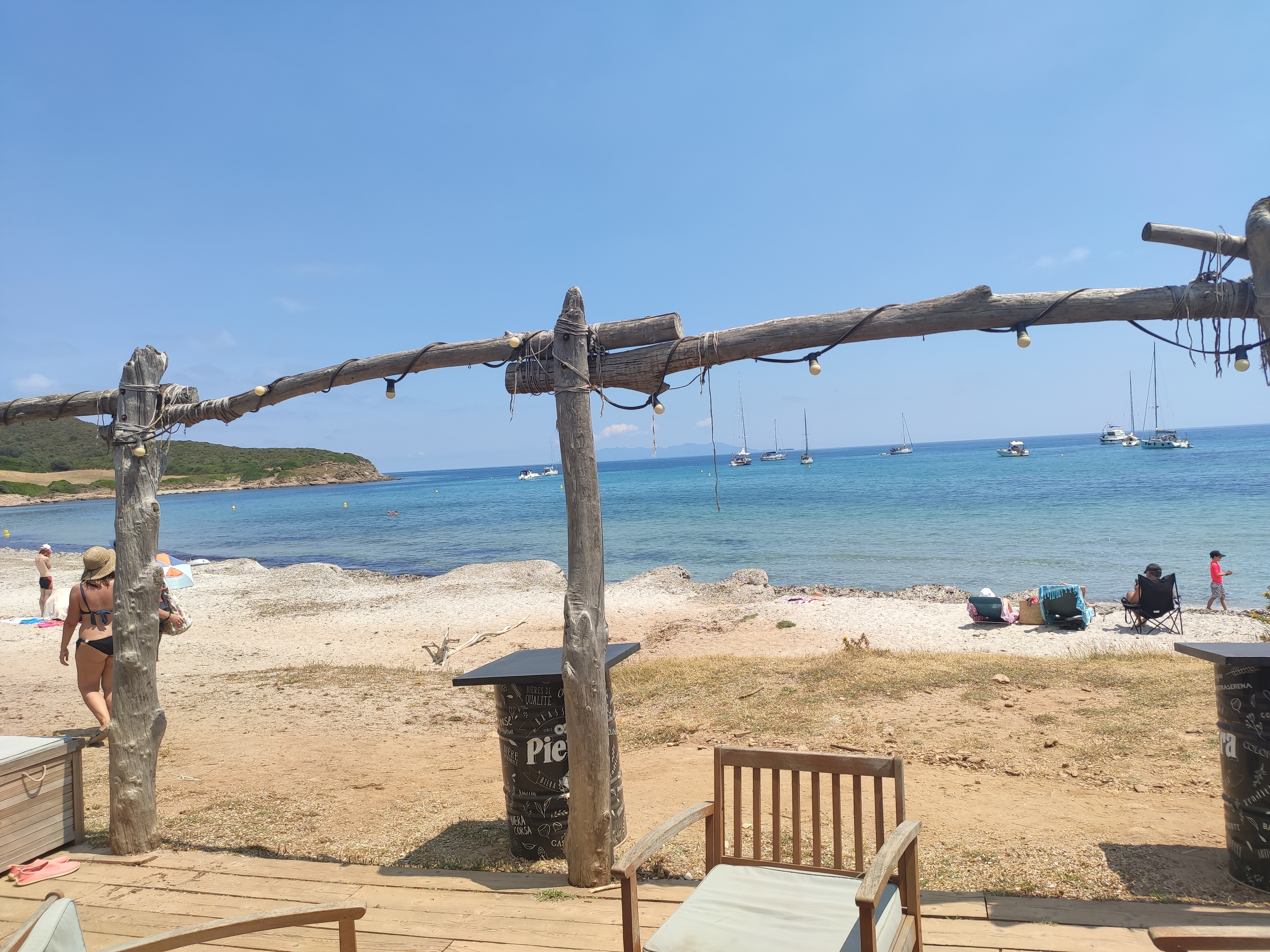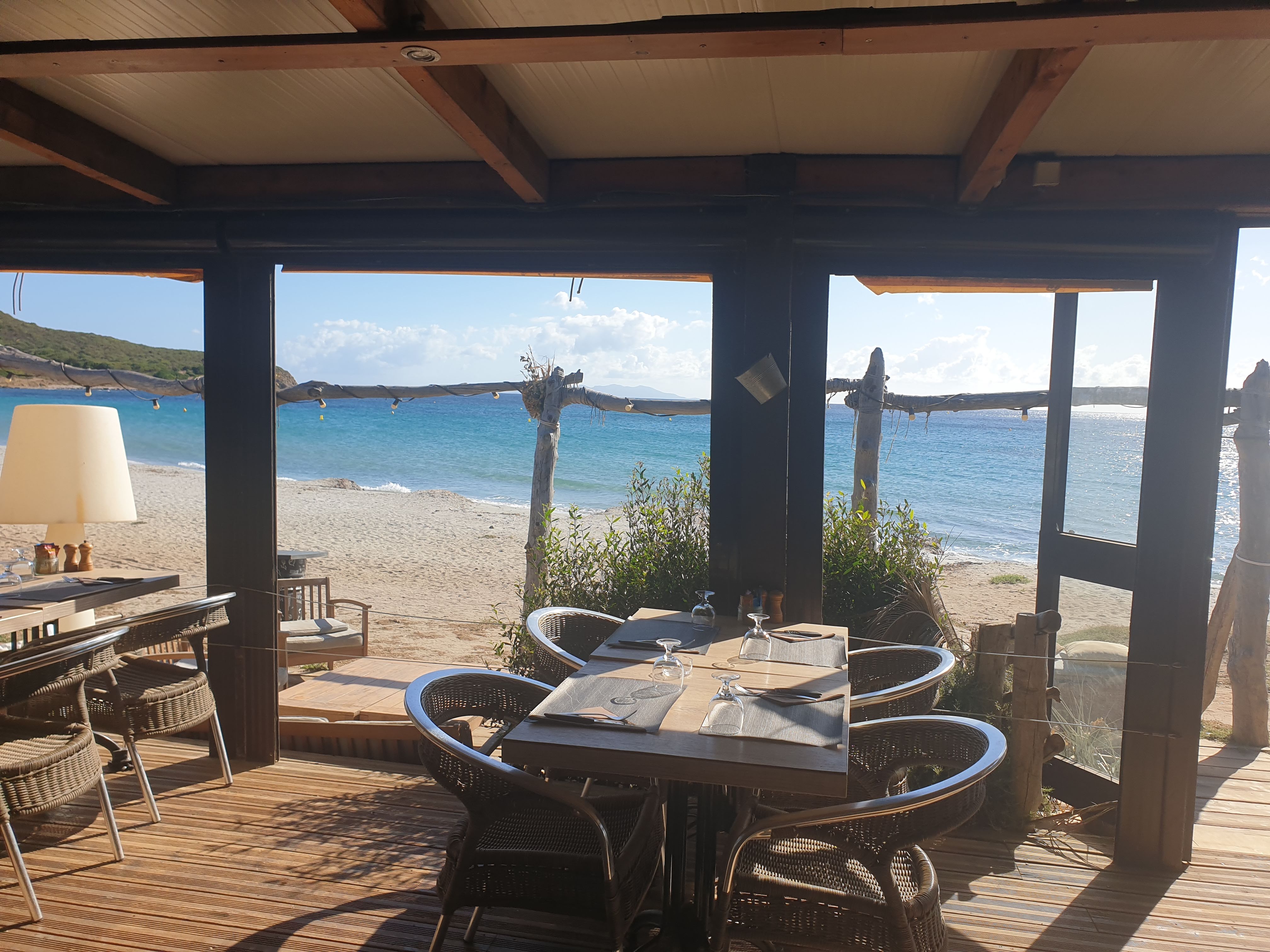 Restaurant paillote sur la plage au bout du Cap Corse C’est au bout de là où les voitures sont autorisées à s’aventurer Cuisine très agréable et service convivial et efficace