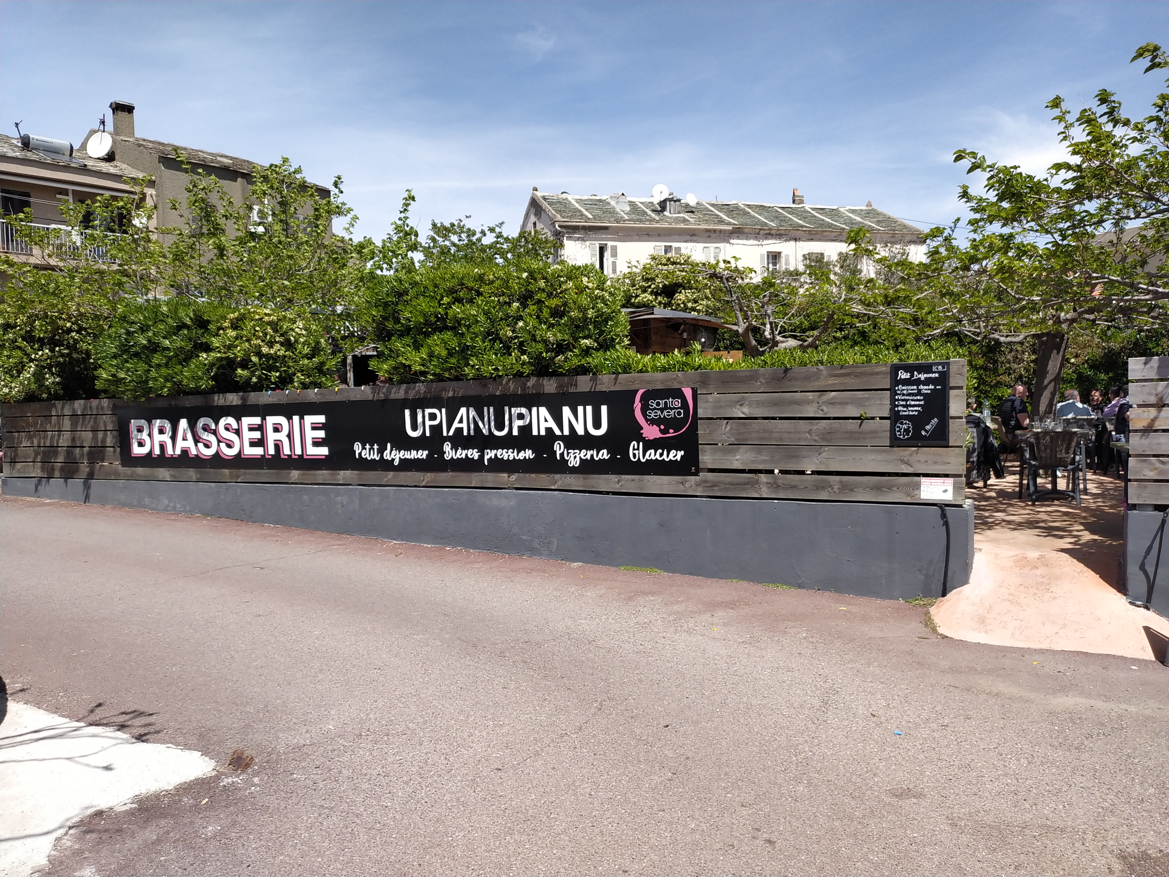 Sur la marine de luri .proche des bateaux. Cadre sympathique. Bon accueil. Prix très abordable. Nous avons pu manger a l extérieur en ce mois de novembre très chaud. Parking du port très proche