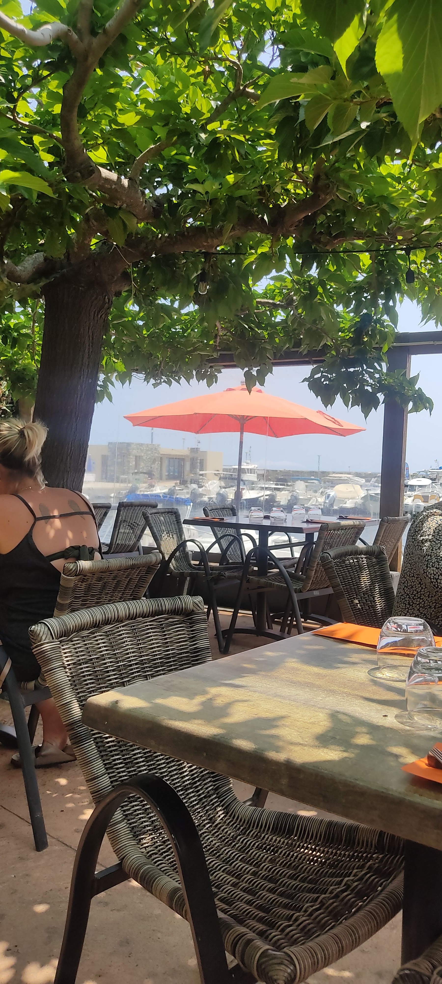 Cadre agréable avec vue sur le port , tables à l’abris du soleil. Service rapide et très bonne cuisine ! Je conseille vivement