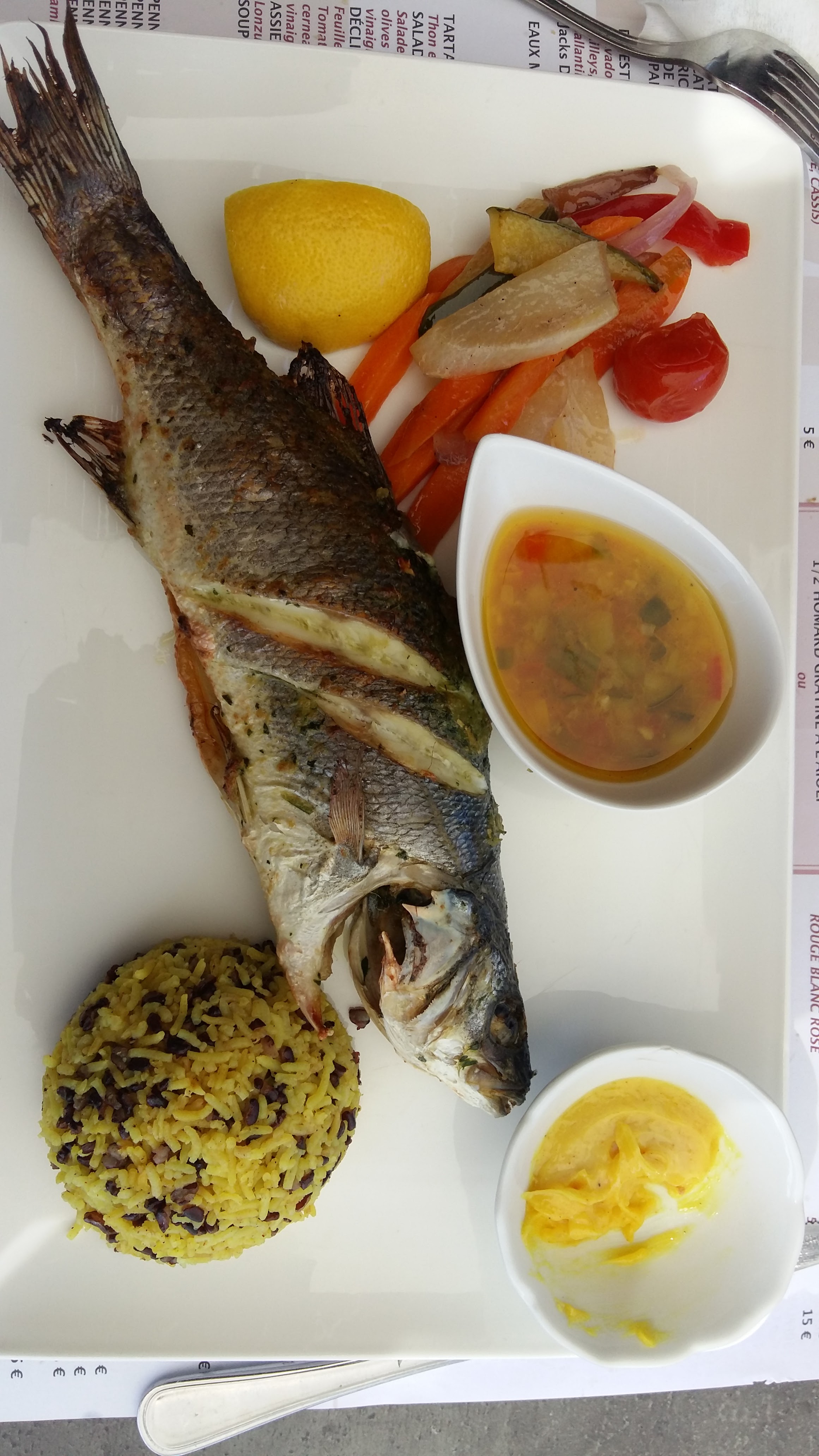 Délicieux et très copieux. Daurade aux légumes avec une entrées d encornets. Un regal. Magnifique terrasse. Très bon rapport qualité prix